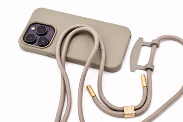 iPhone 2in1 Grau - modulare Handykette mit Baumwollkordel Cappuccino