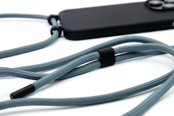 iPhone 2in1 Schwarz - modulare Handykette mit Baumwollkordel Grau