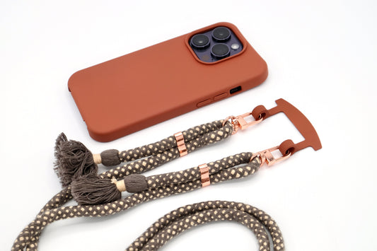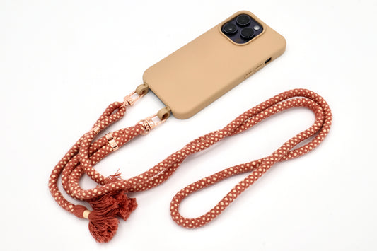 iPhone 2in1 Brick - modulare Handykette mit Baumwollkordel Rostrot
