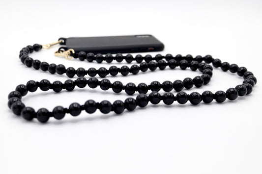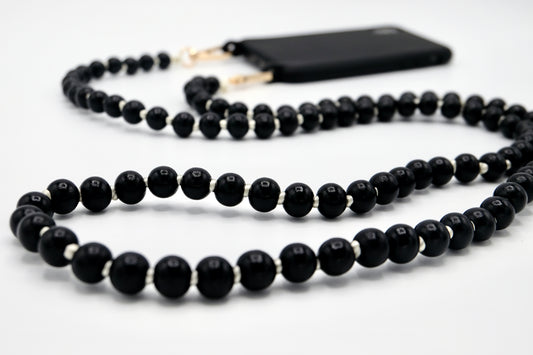 Handykette - Holzperlen kurz mit Karabinern All Black