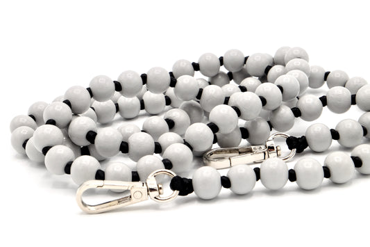 Handykette - Holzperlen mit Karabinern Hellgrau/Schwarz
