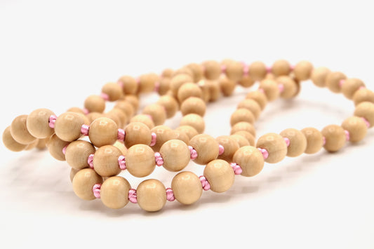 Handykette - Holzperlen mit Karabinern Natur/Rosa