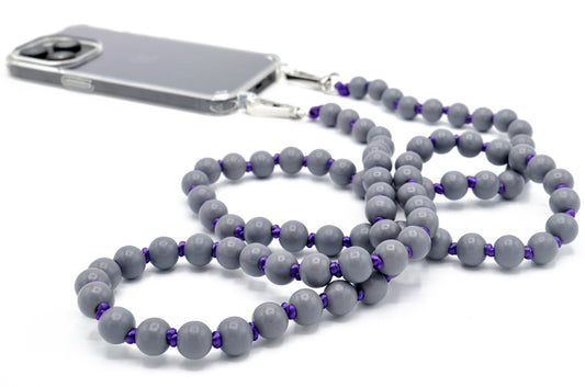 Handykette - Holzperlen mit Karabinern Grau/Lila