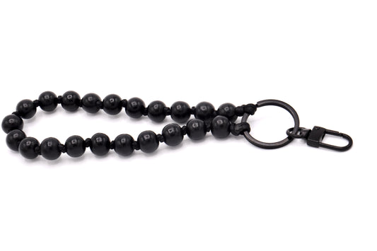 Schlüsselanhänger aus Holzperlen mit Karabiner All Black