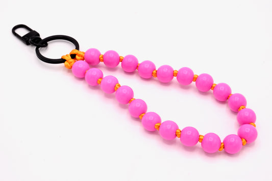 Handykette - Holzperlen kurz mit Karabinern Neonpink/Orange