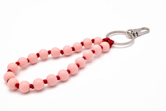 Schlüsselanhänger aus Holzperlen mit Karabiner Rosa/Rot