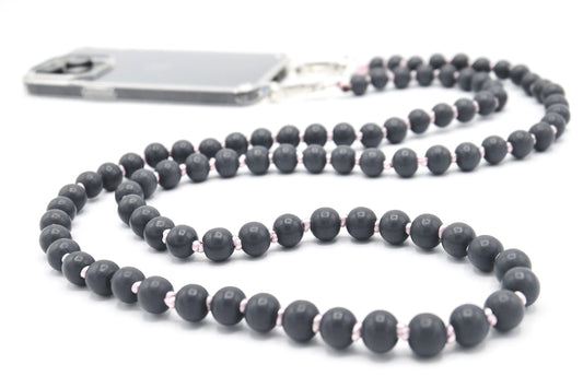 Handykette - Holzperlen mit Karabinern Anthrazit/Rosa
