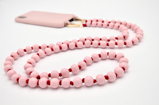 Handykette - Holzperlen mit Karabinern Rosa/Rot