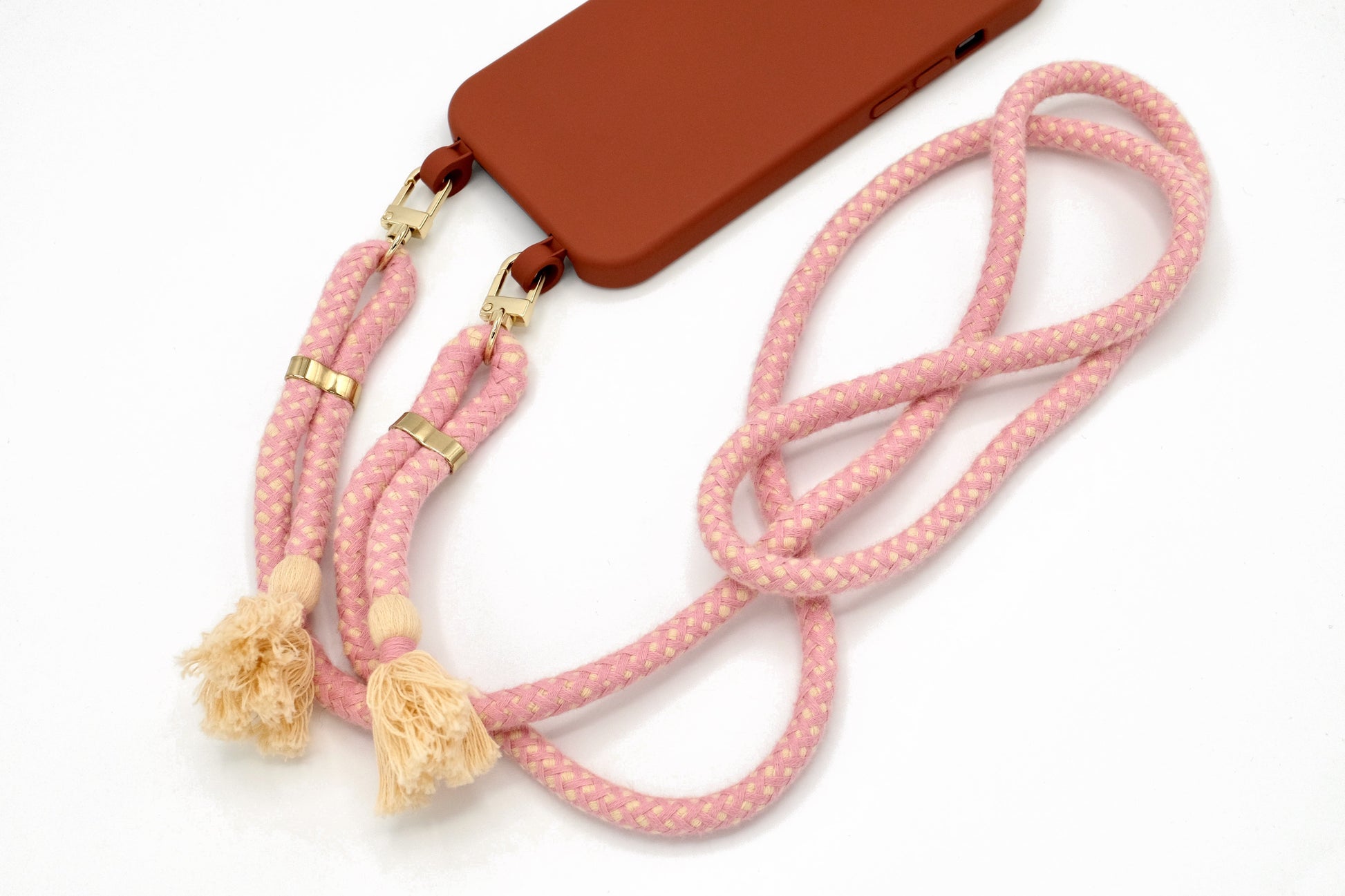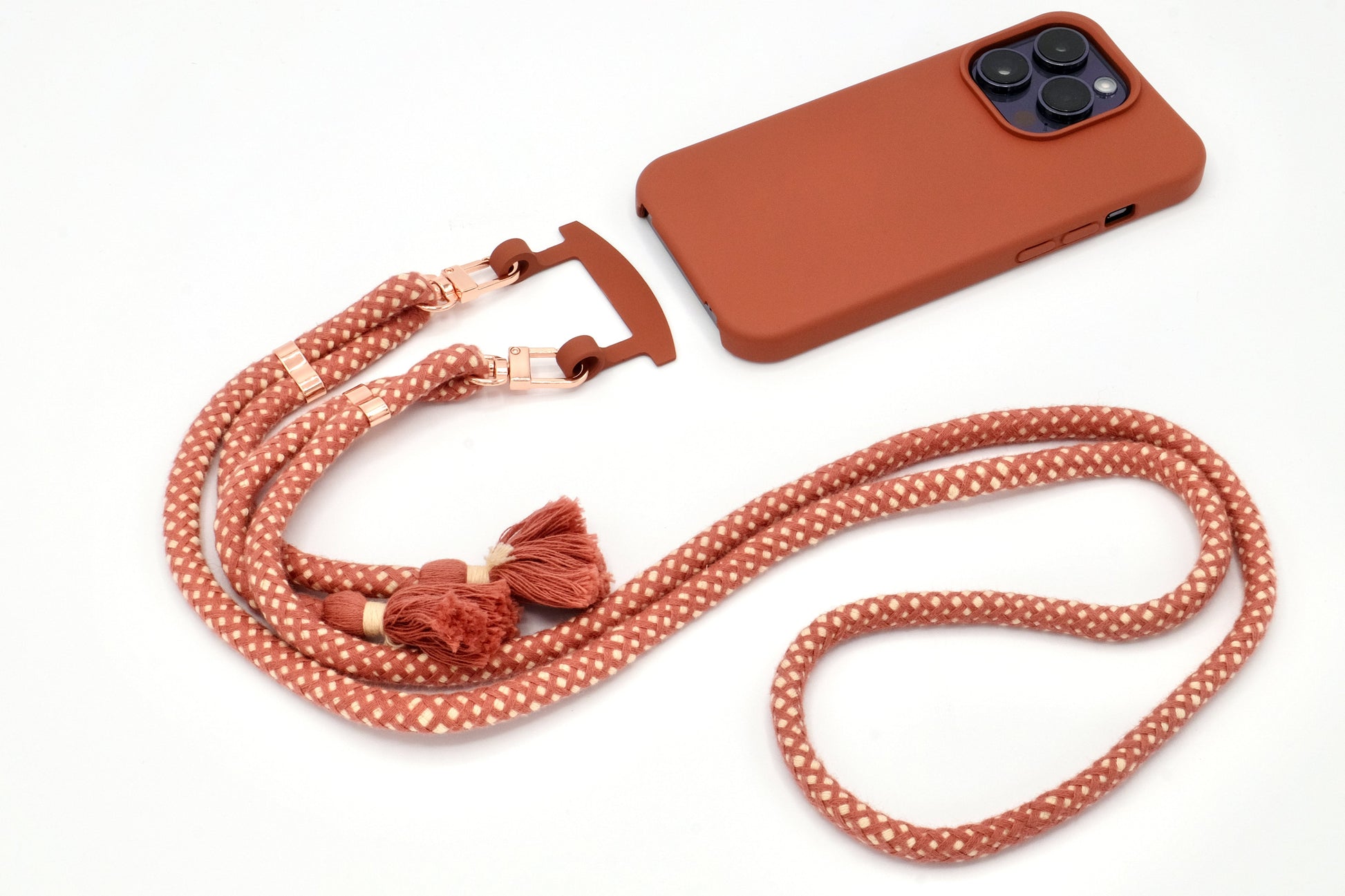 Handyhülle und Handykette vereint in einem einzigen Produkt.