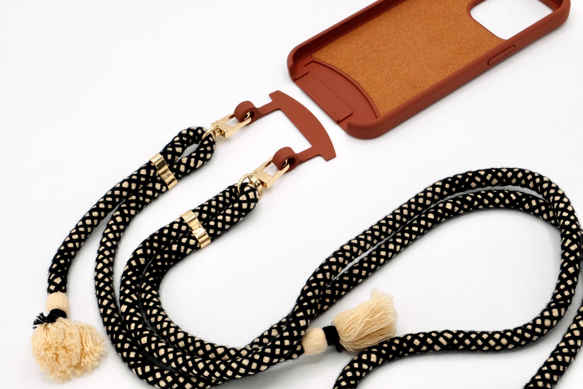Handyhülle und Handykette vereint in einem einzigen Produkt.