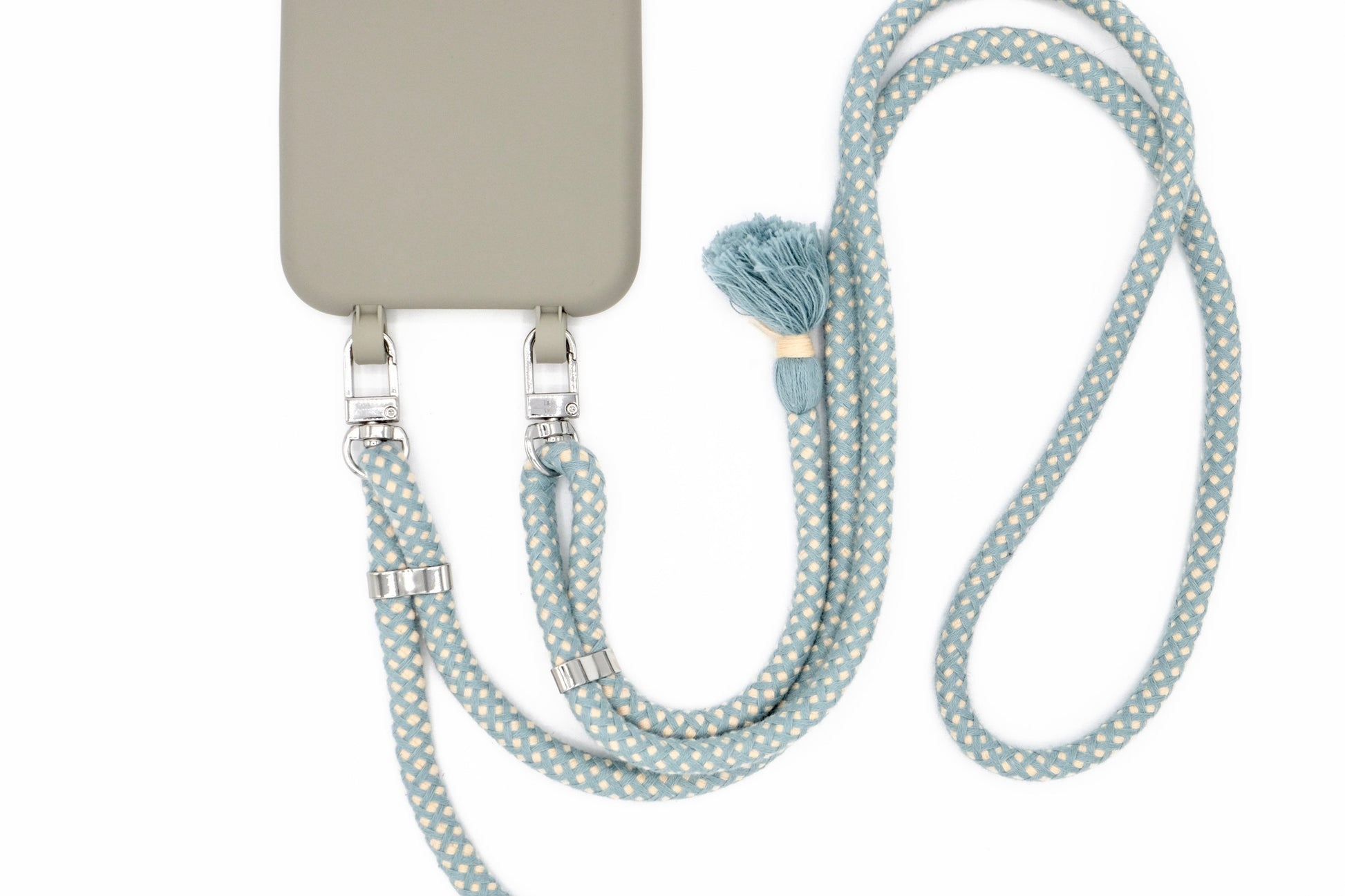 Handyhülle und Handykette vereint in einem einzigen Produkt.