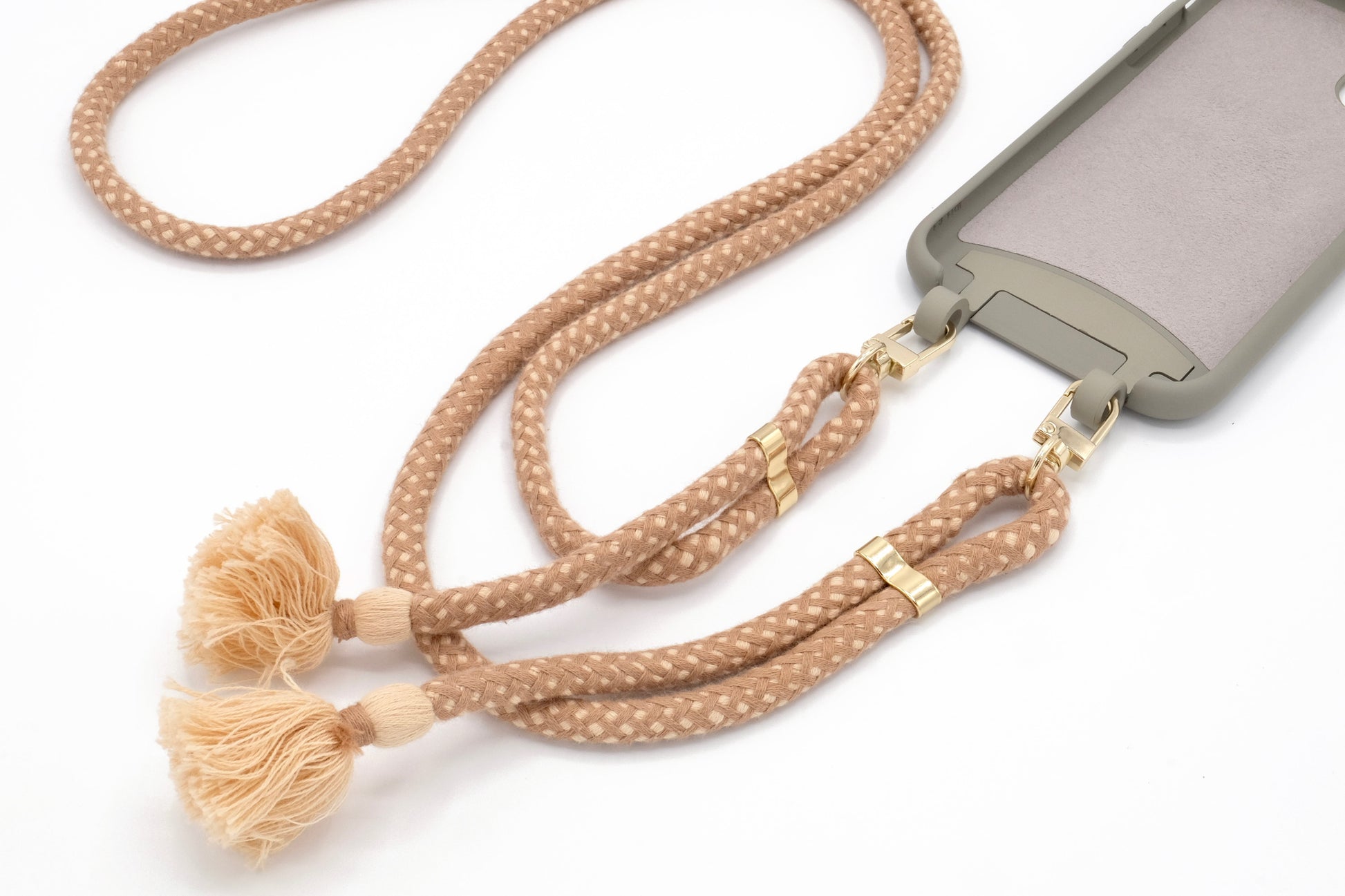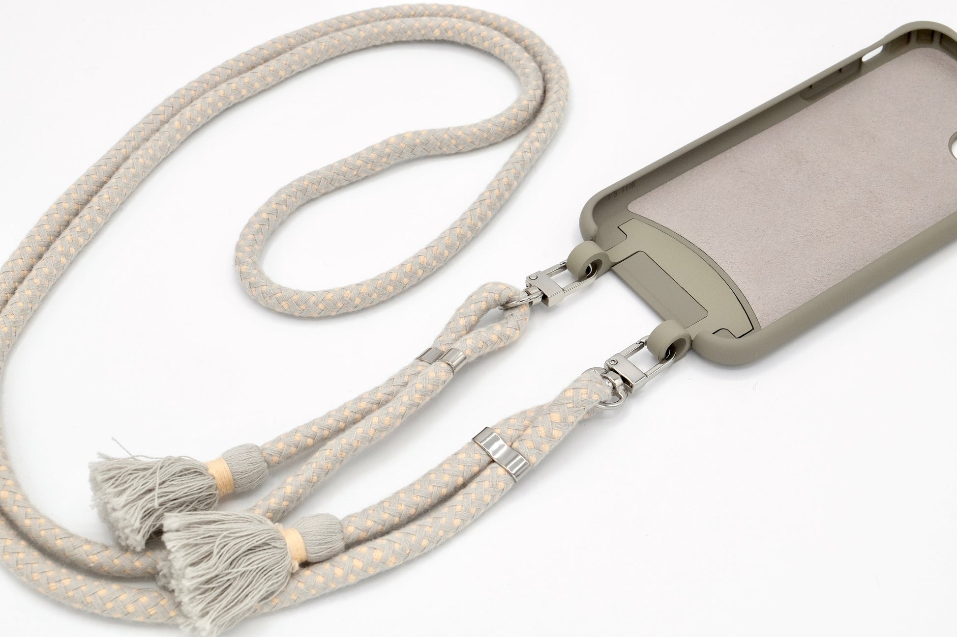 Handyhülle und Handykette vereint in einem einzigen Produkt.