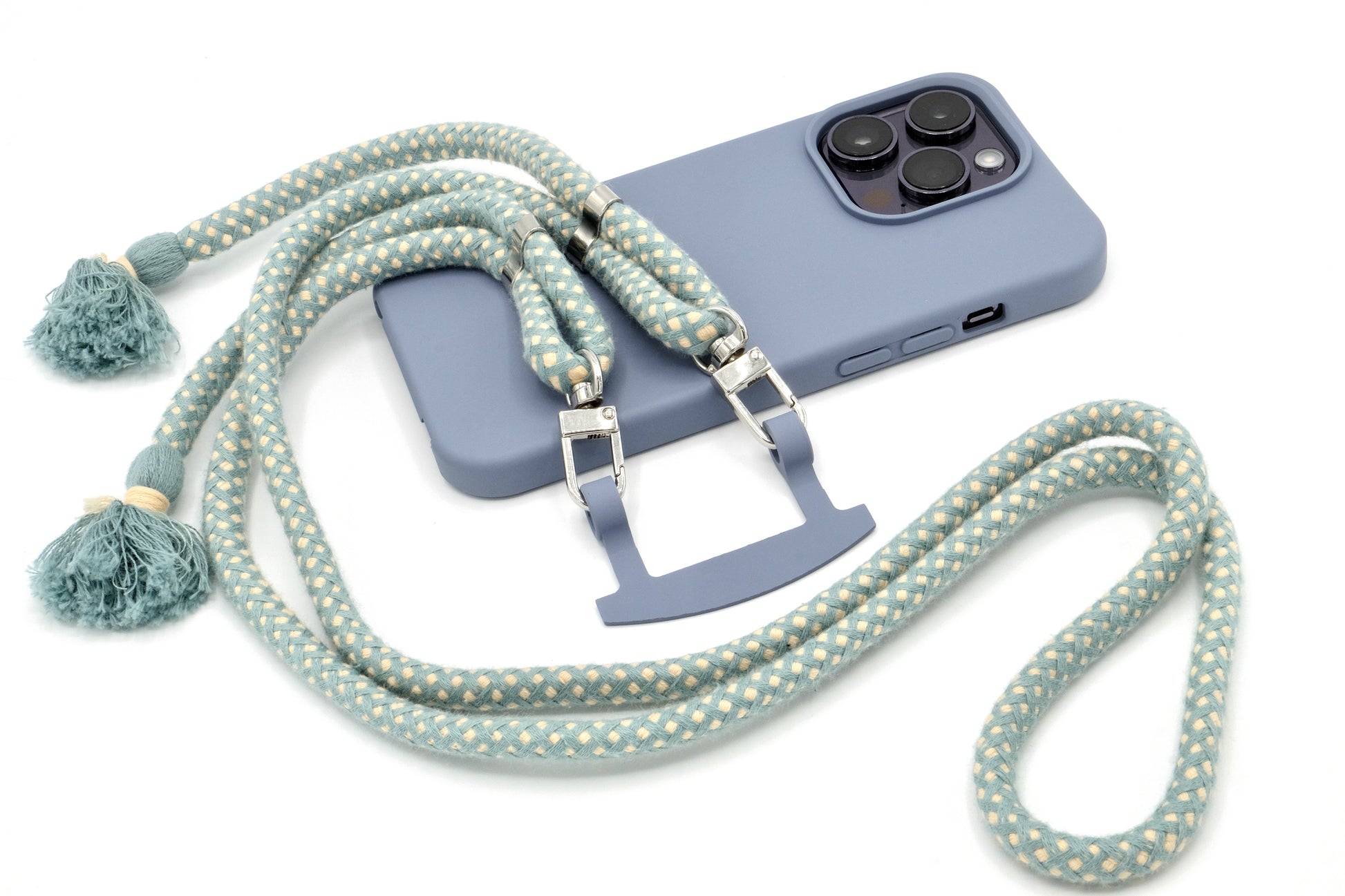 Handyhülle und Handykette vereint in einem einzigen Produkt.