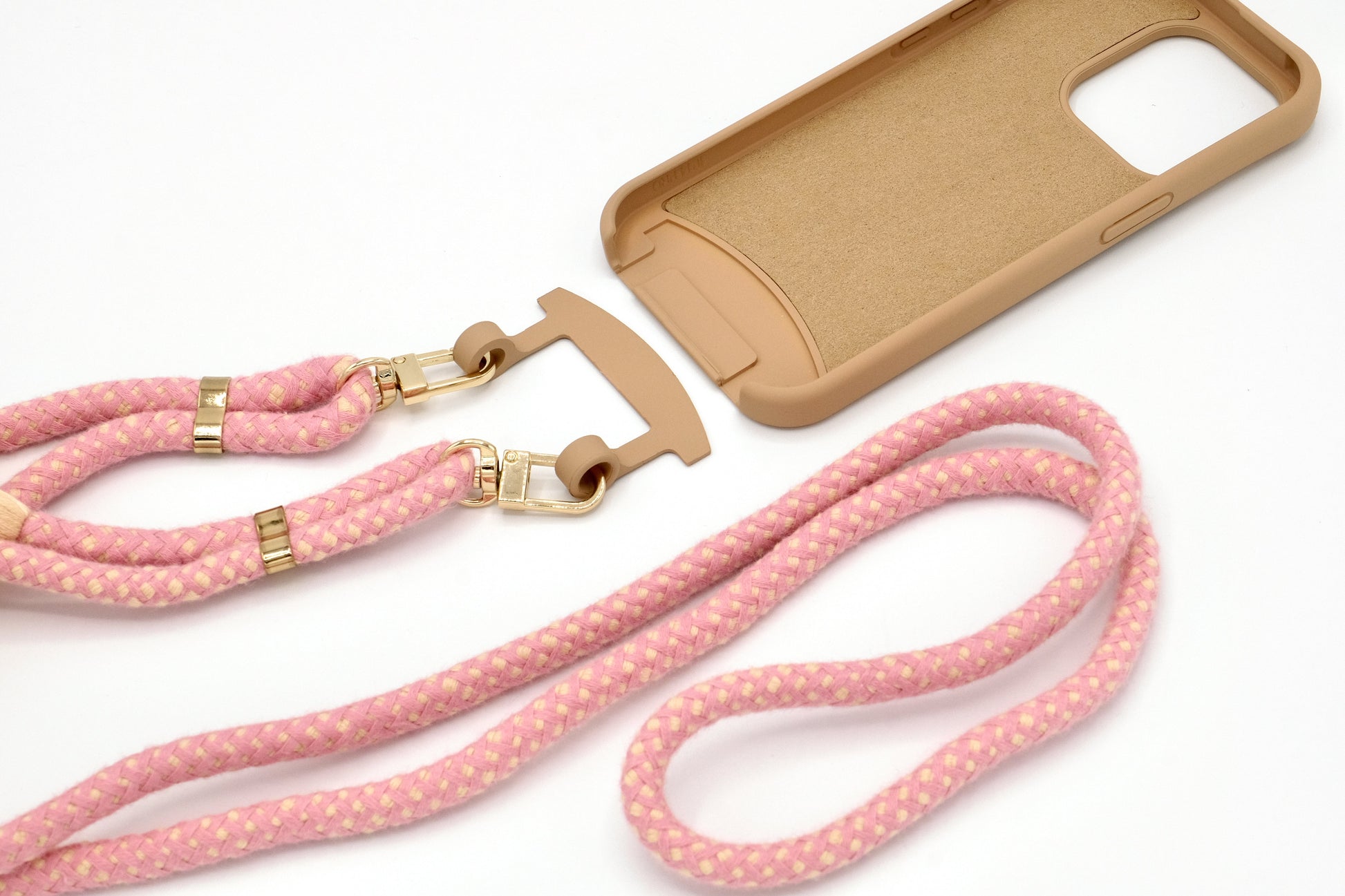 Handyhülle und Handykette vereint in einem einzigen Produkt.