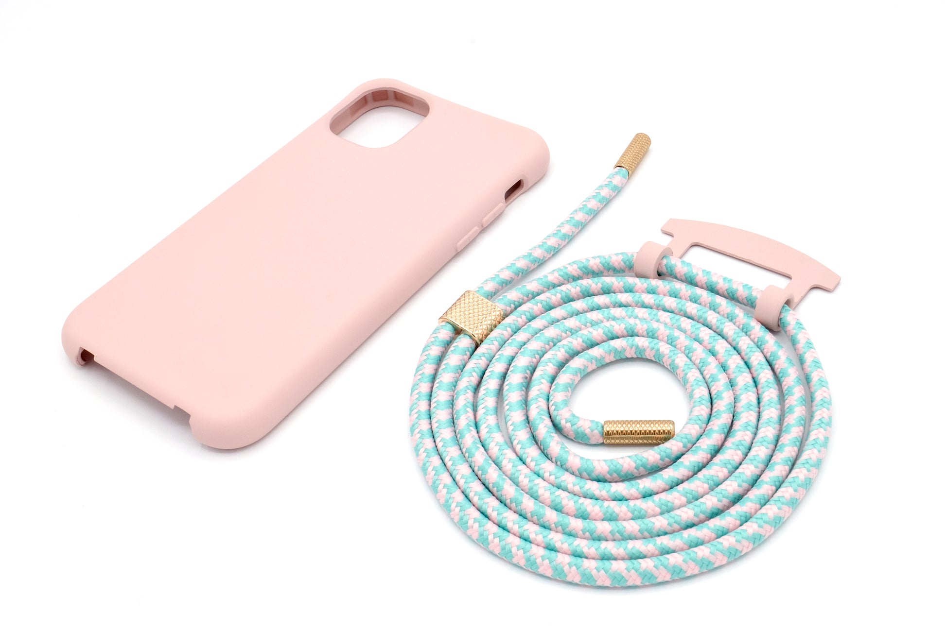 iPhone 2in1 Puderrosa - modulare Handykette mit Seil