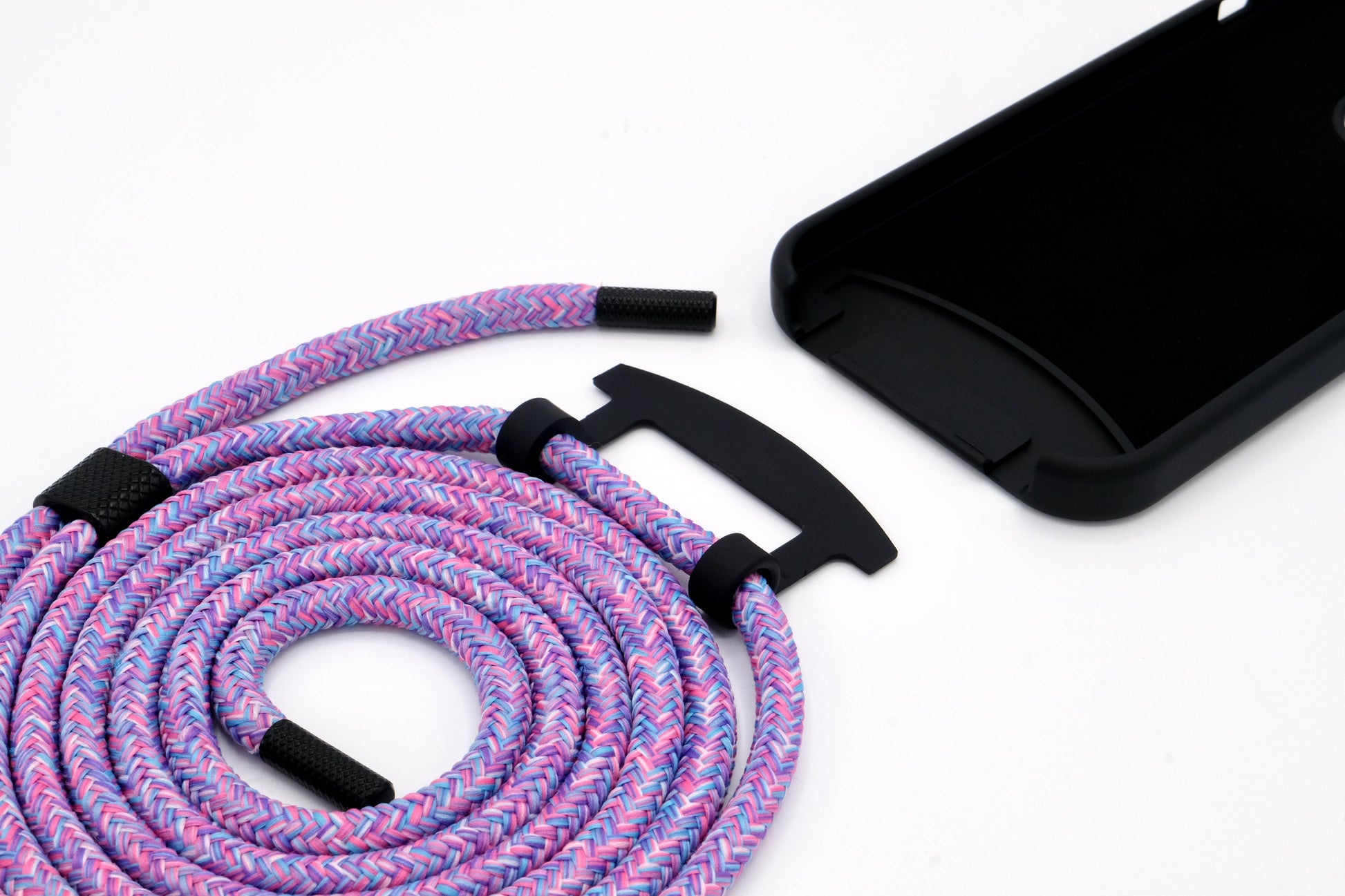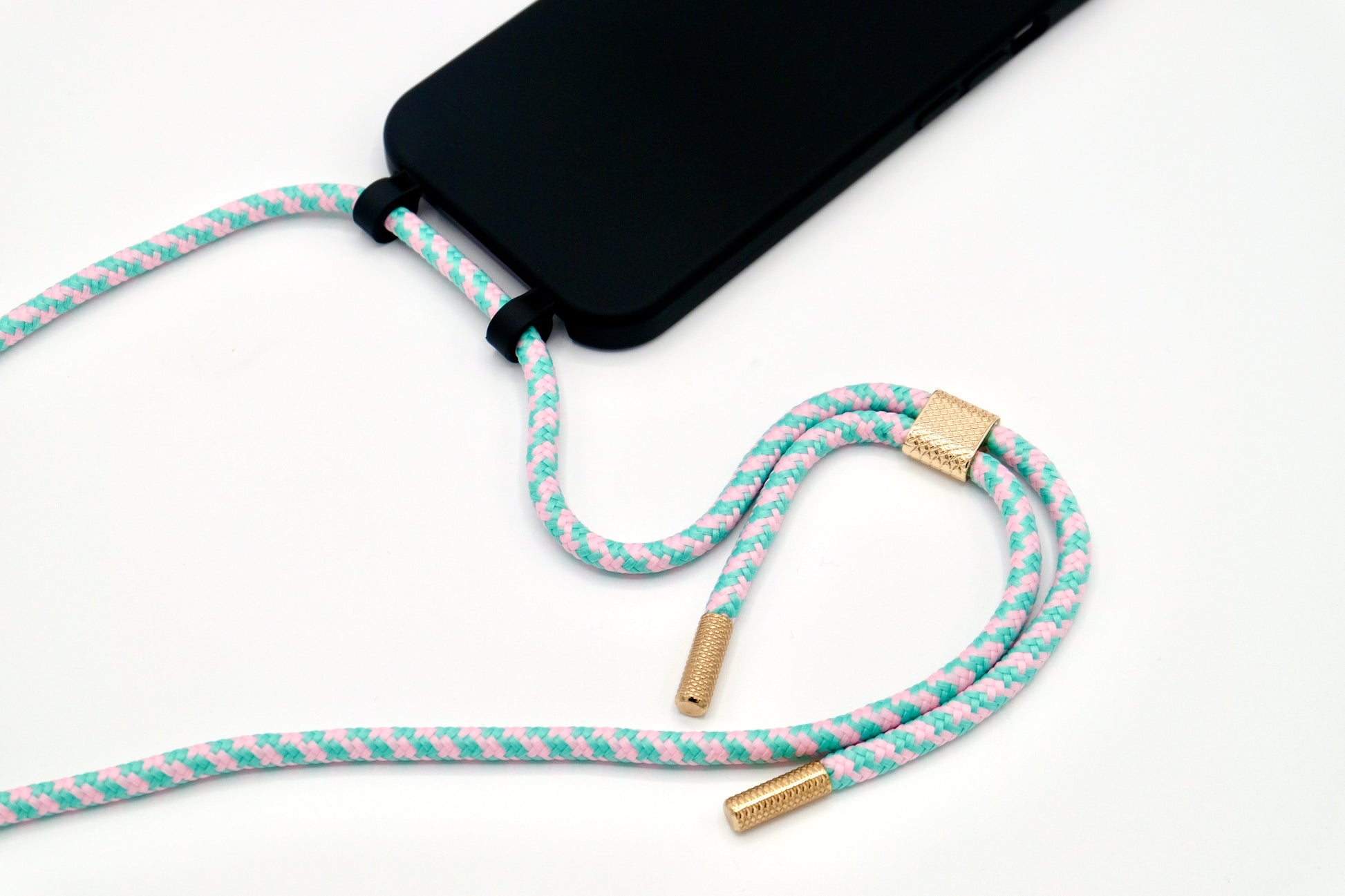 Handyhülle und Handykette vereint in einem einzigen Produkt.