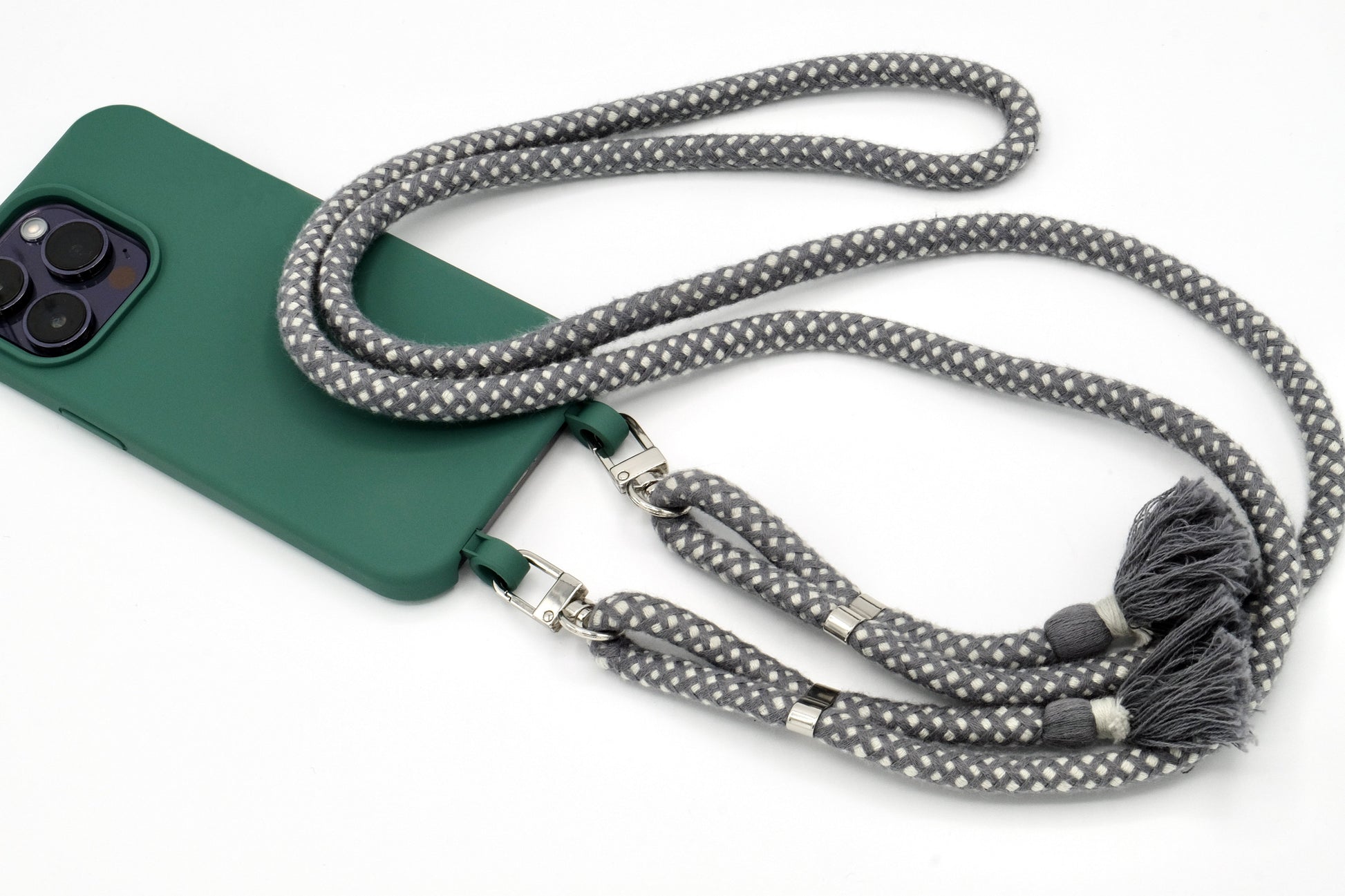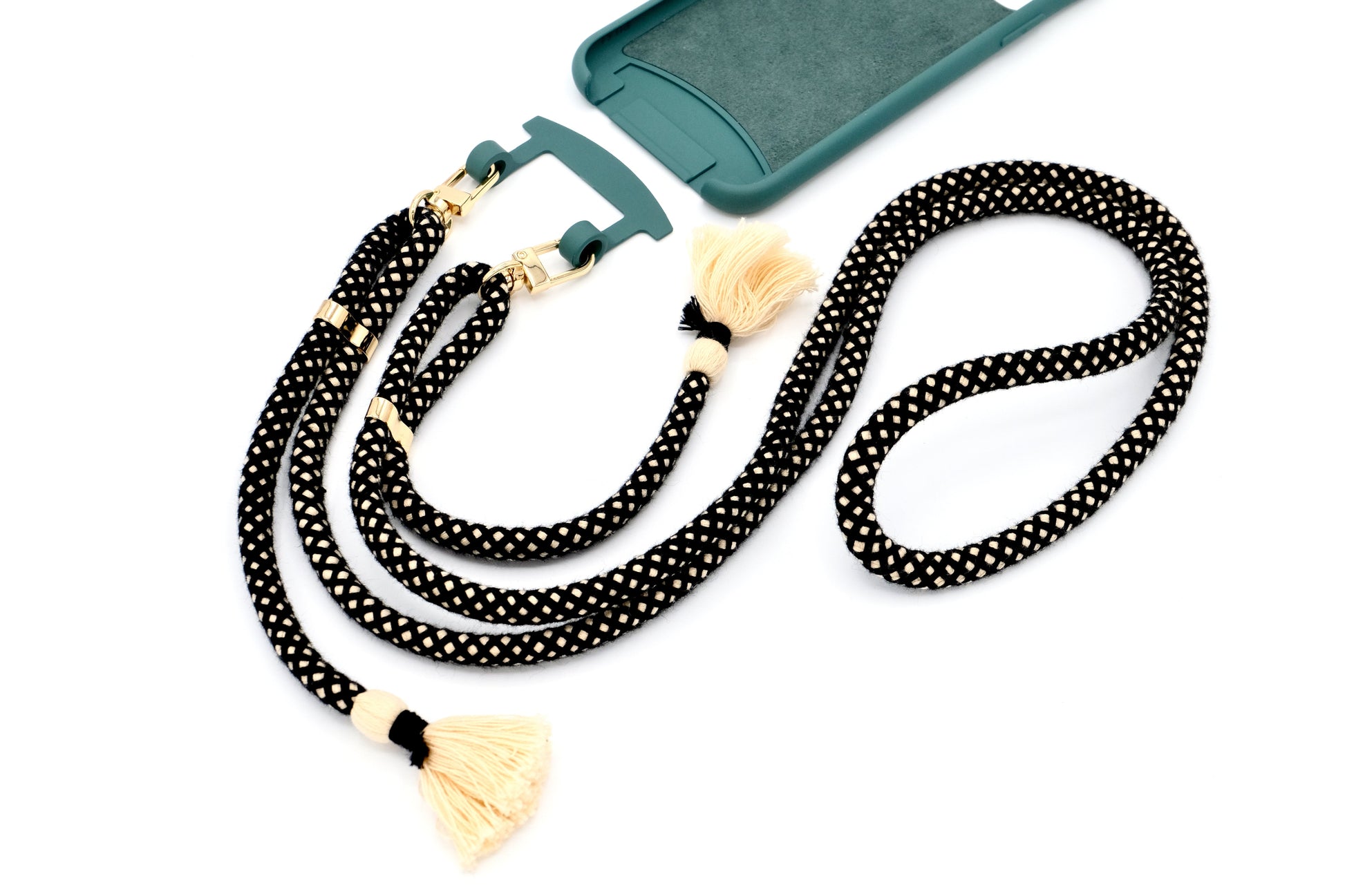 Handyhülle und Handykette vereint in einem einzigen Produkt.
