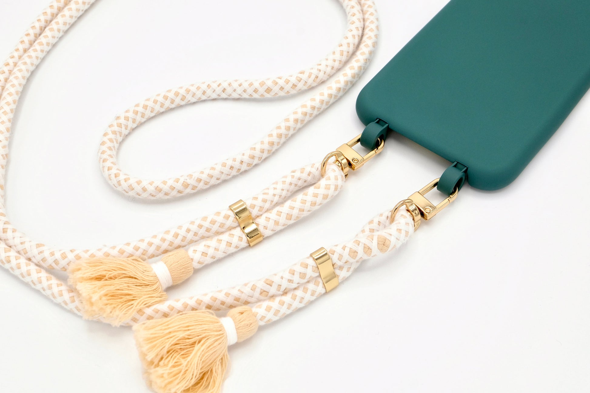 iPhone 2in1 Petrol - modulare Handykette mit Baumwollkordel Cappuccino