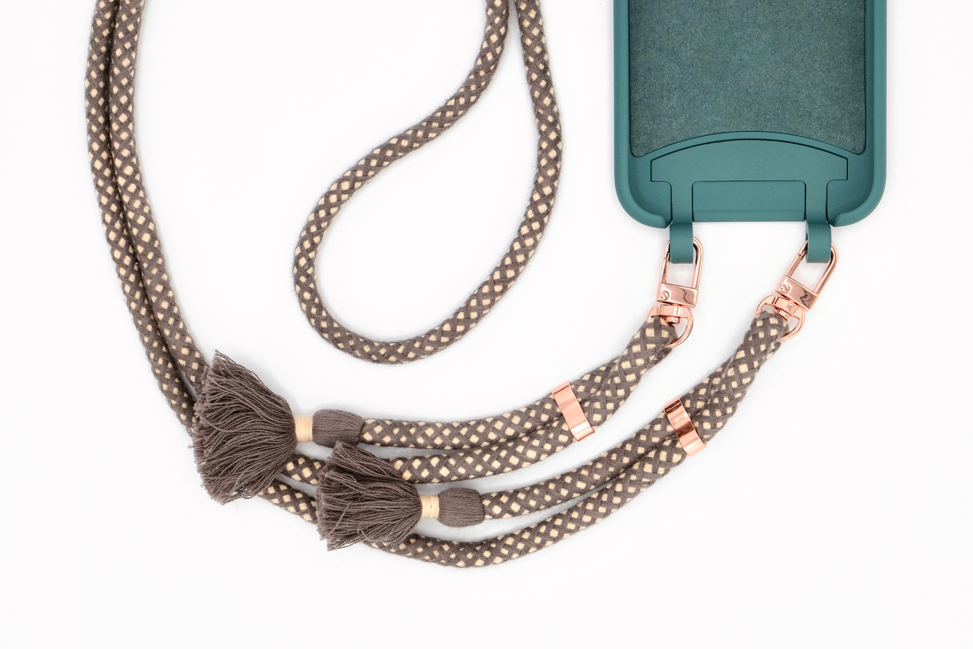 Handyhülle und Handykette vereint in einem einzigen Produkt.