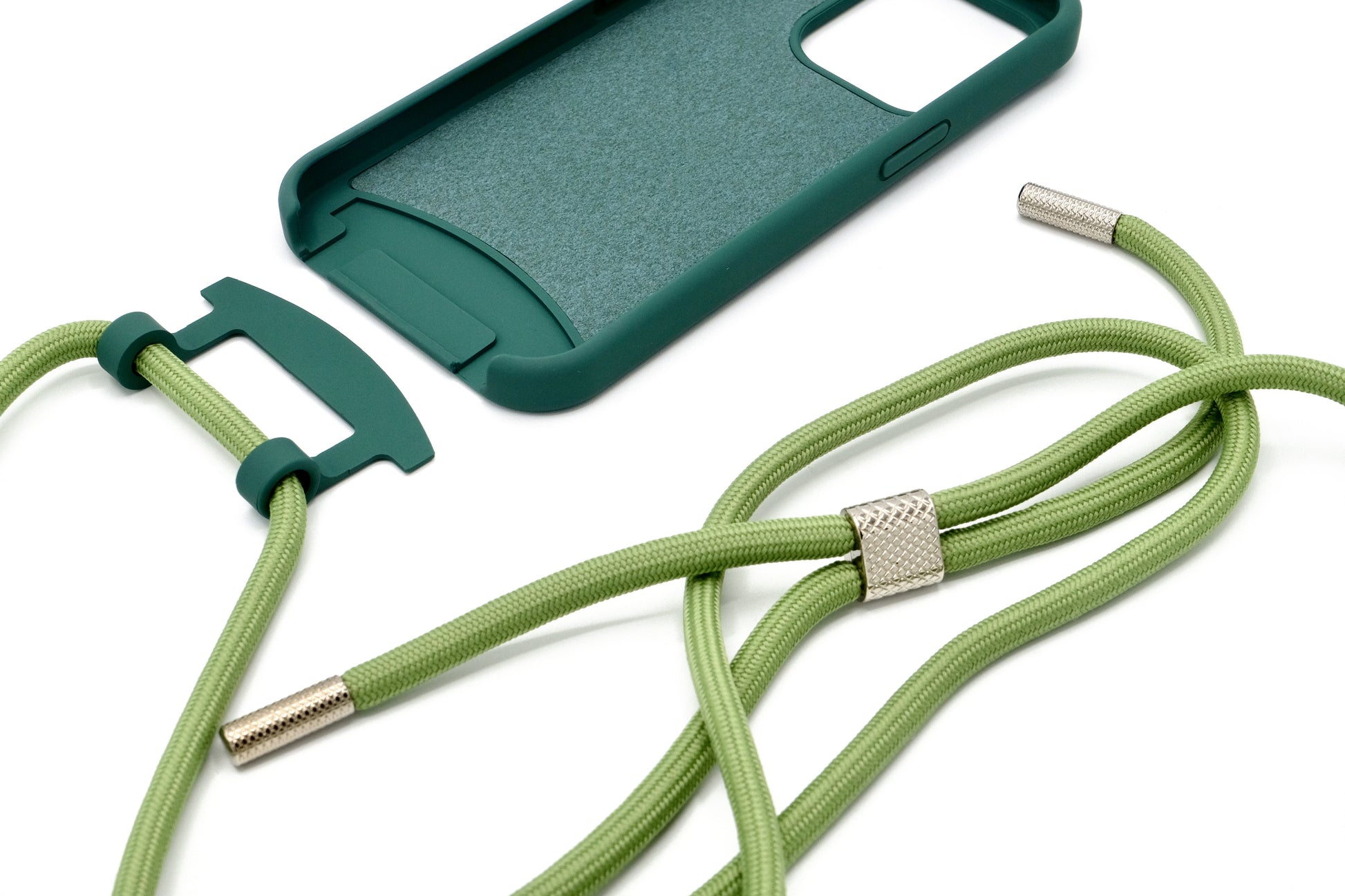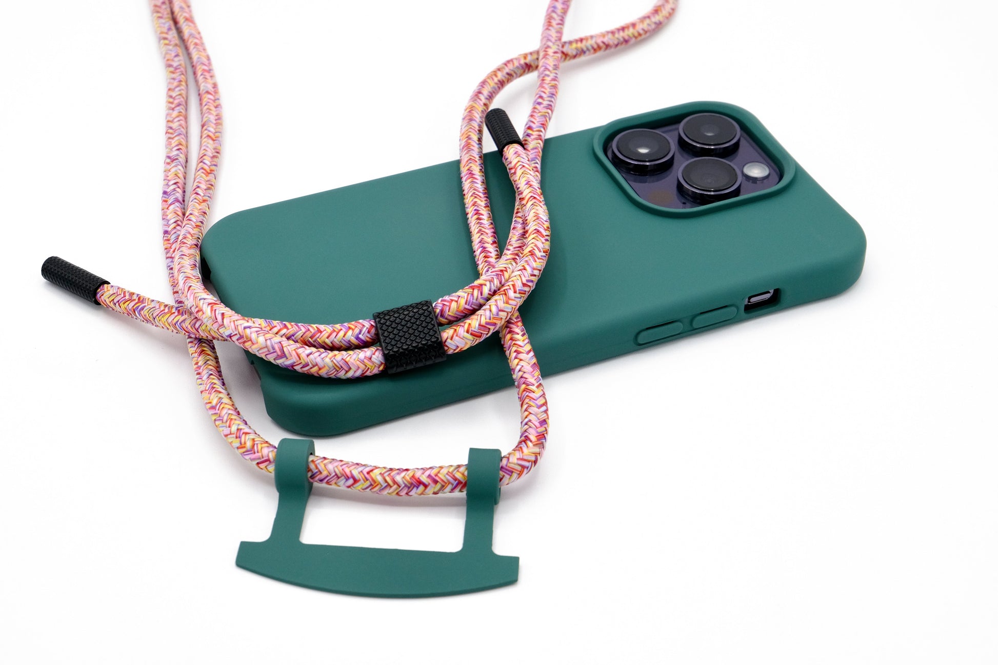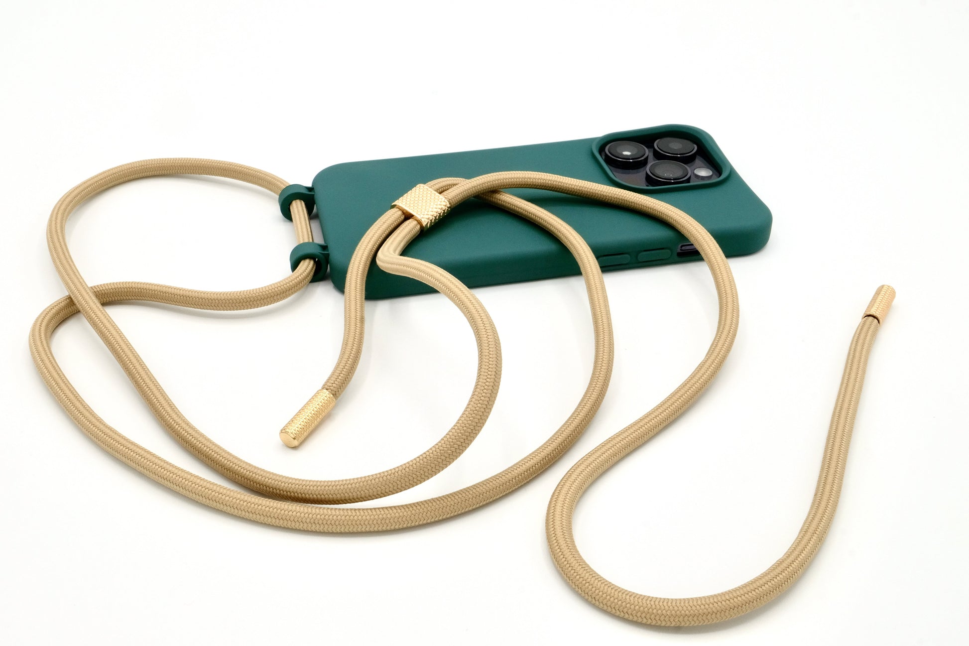 Handyhülle und Handykette vereint in einem einzigen Produkt.
