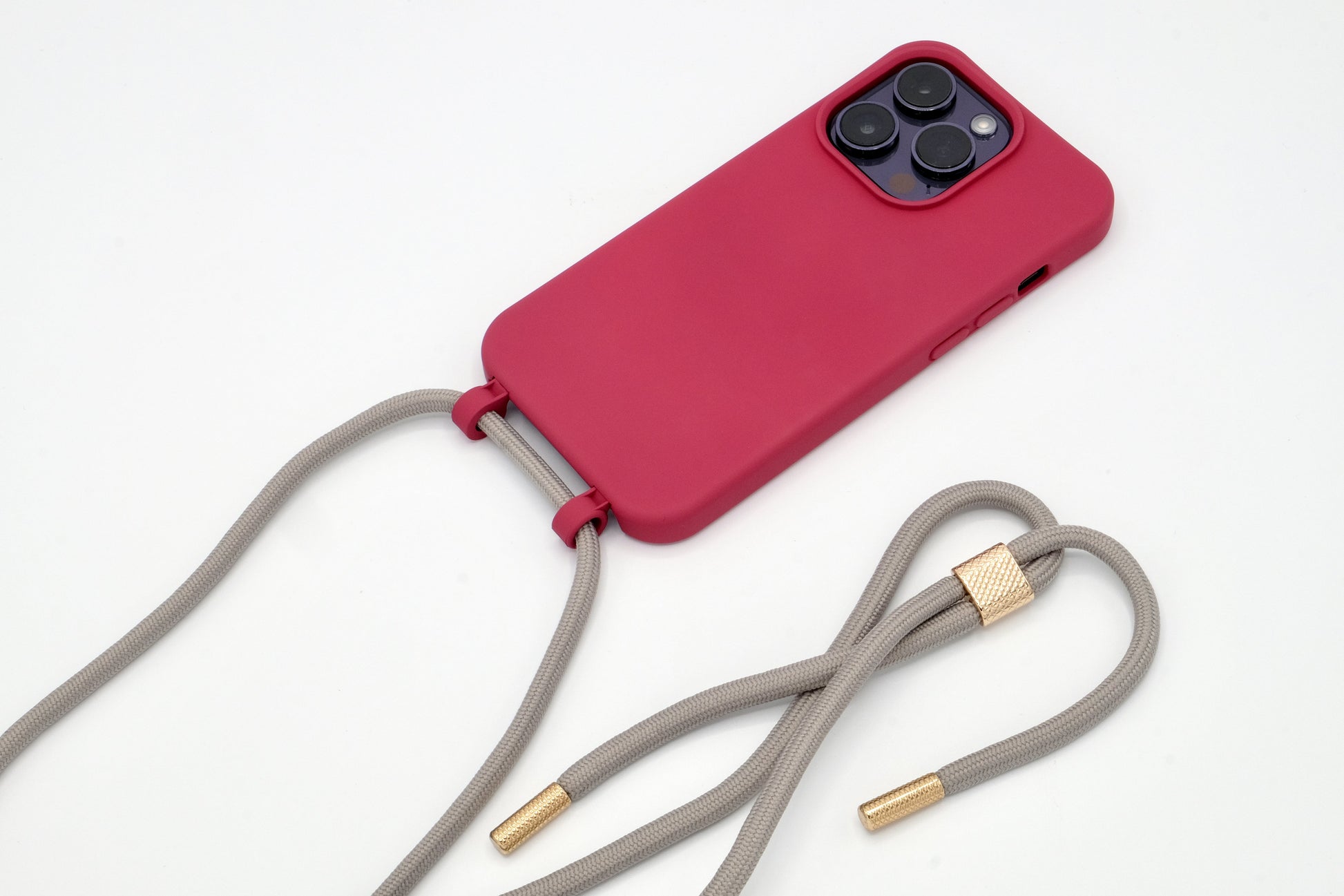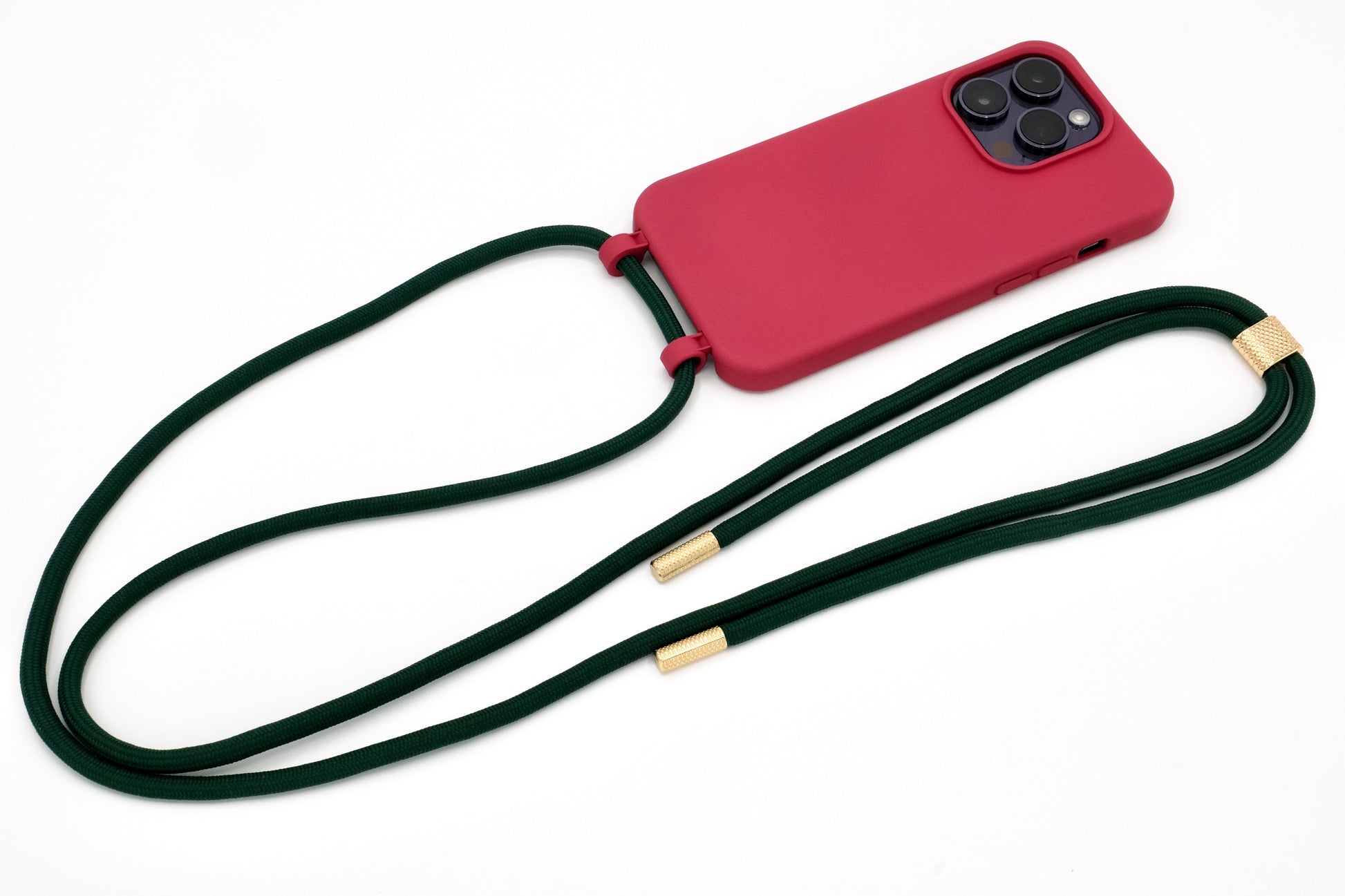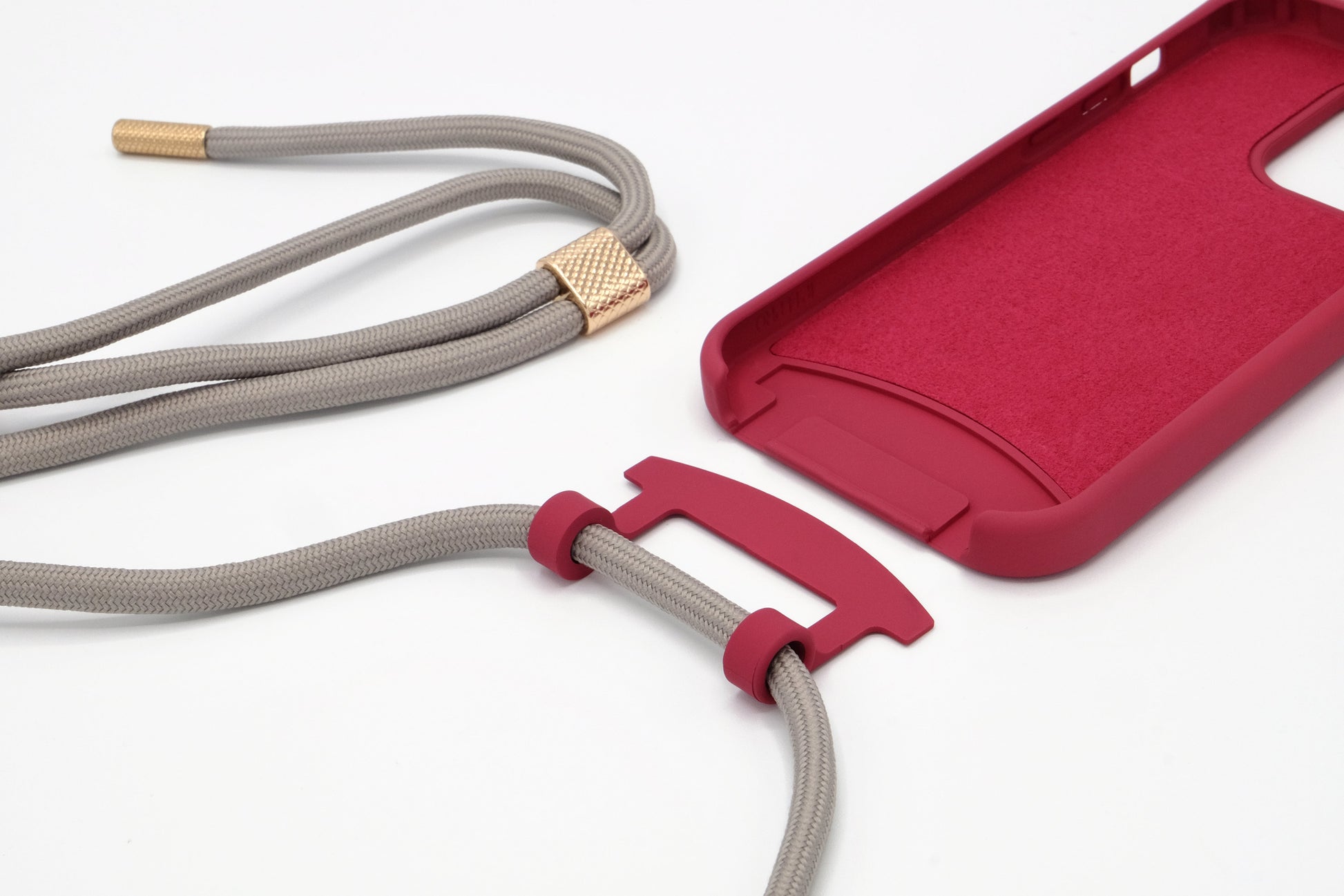Handyhülle und Handykette vereint in einem einzigen Produkt.