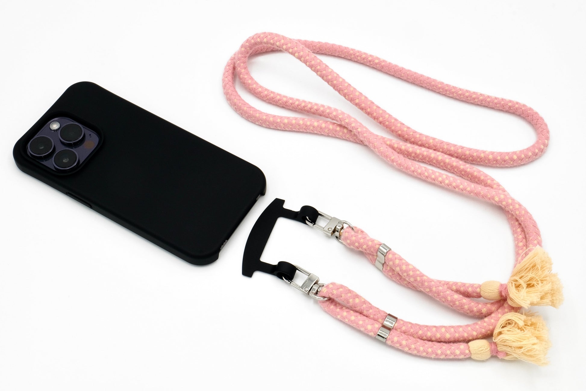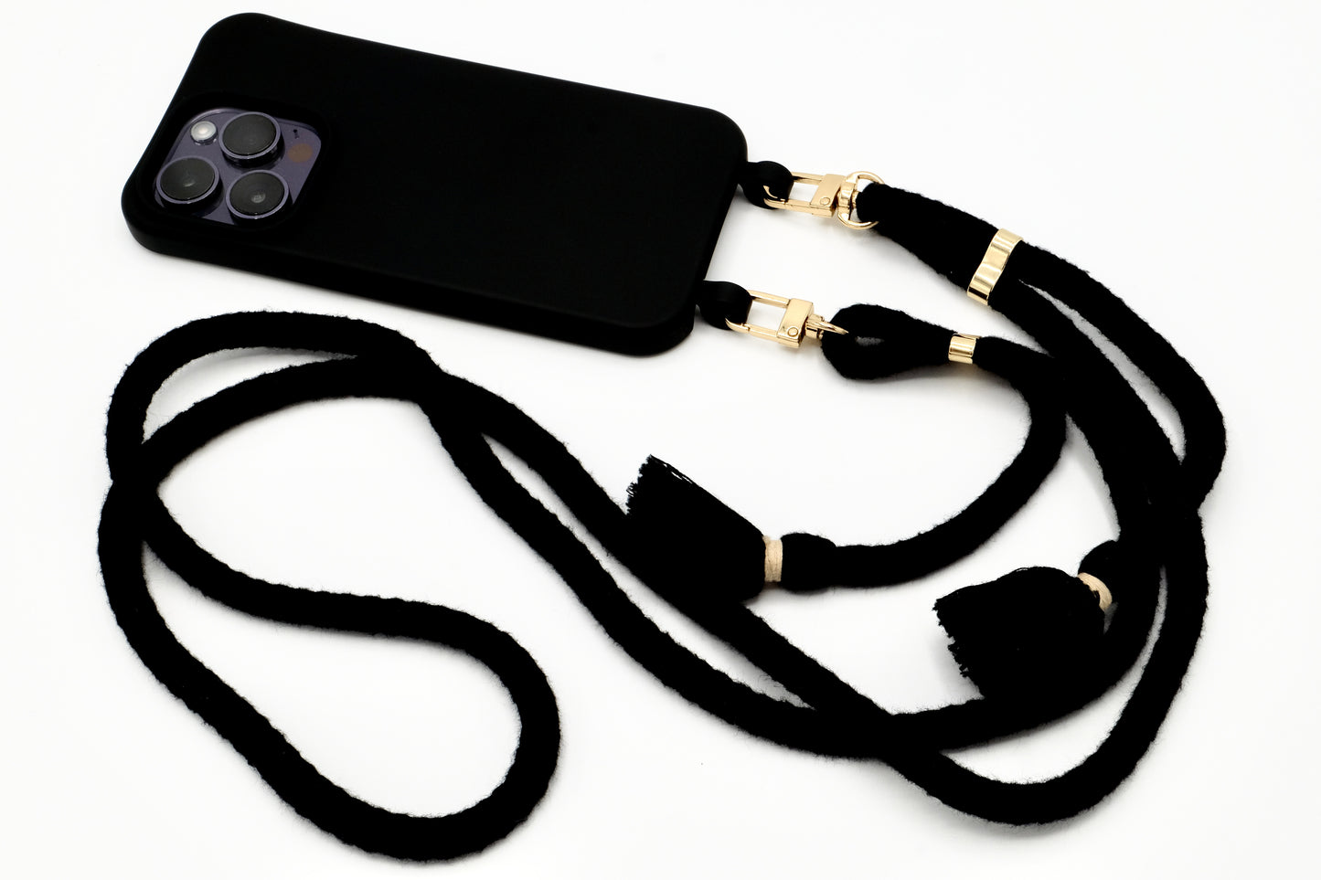 Handyhülle und Handykette vereint in einem einzigen Produkt.