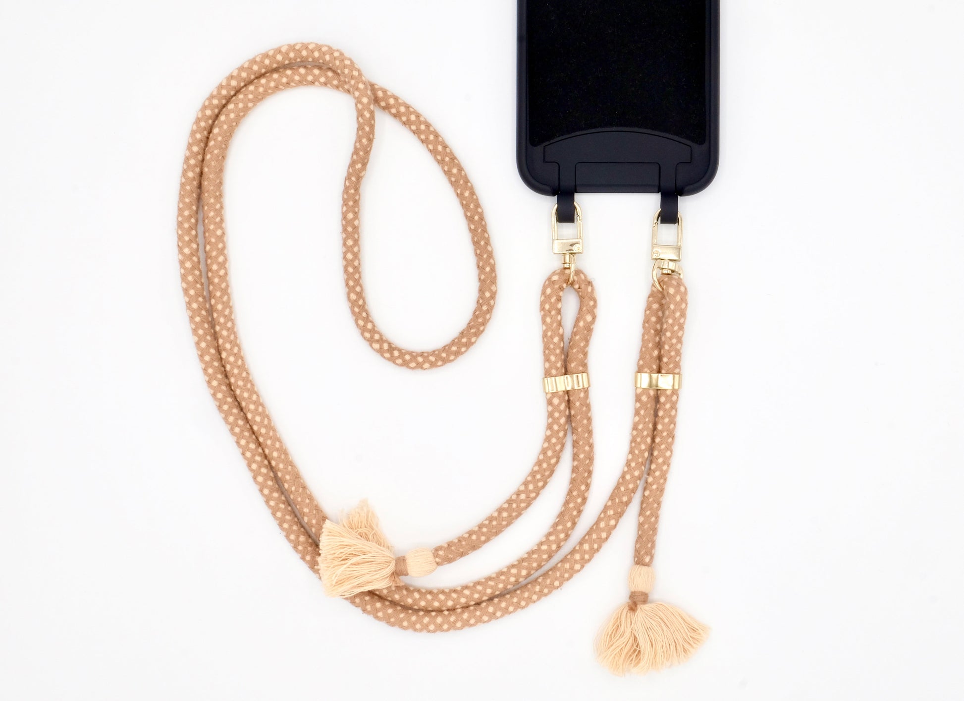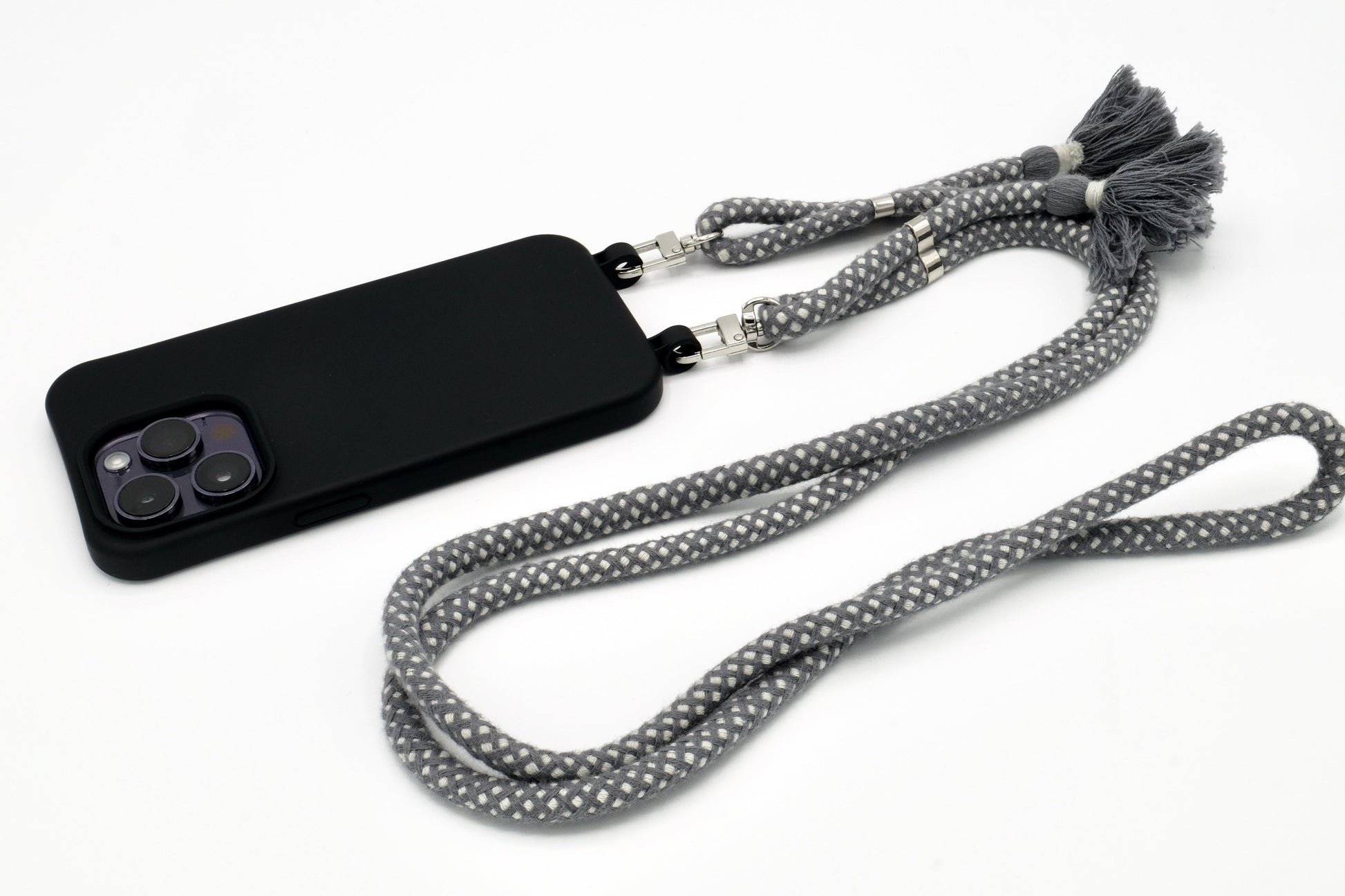Handyhülle und Handykette vereint in einem einzigen Produkt.
