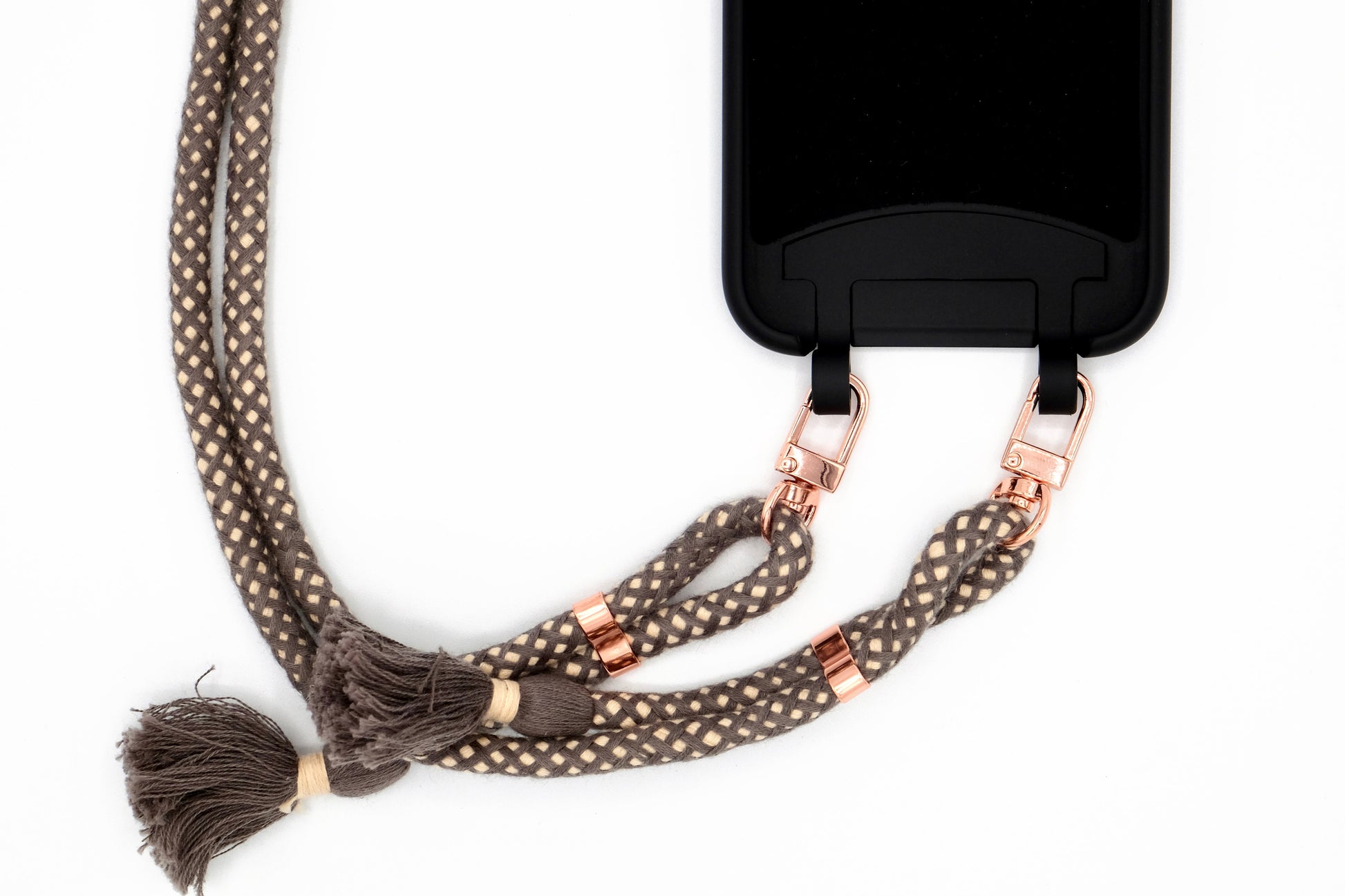 Samsung 2in1 Schwarz - modulare Handykette mit Baumwollkordel Mocca