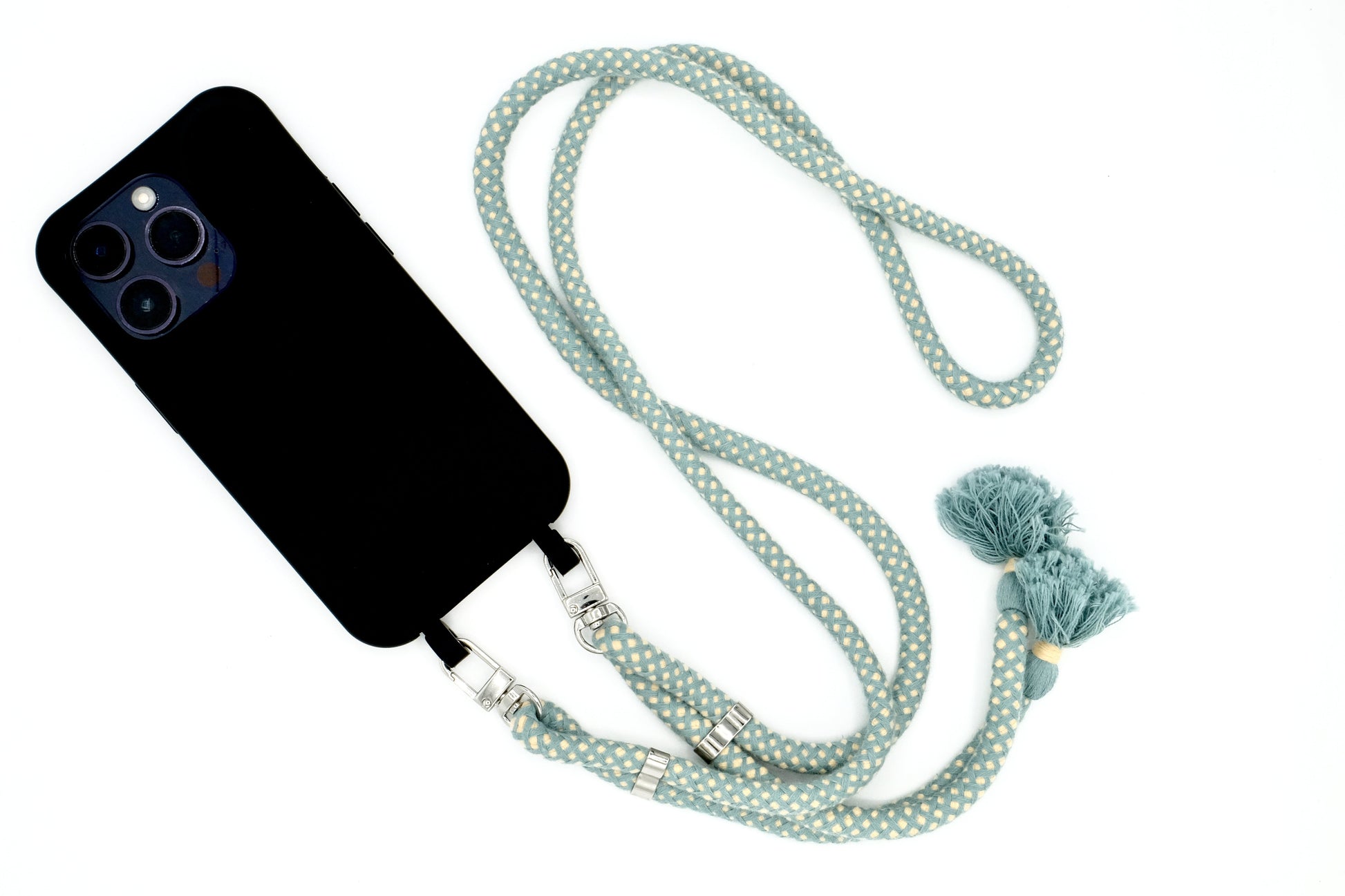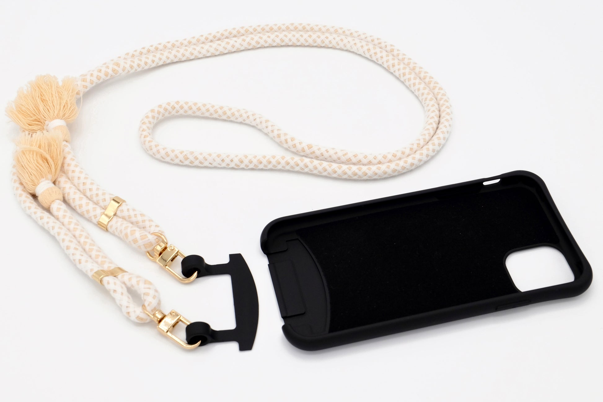 Handyhülle und Handykette vereint in einem einzigen Produkt.