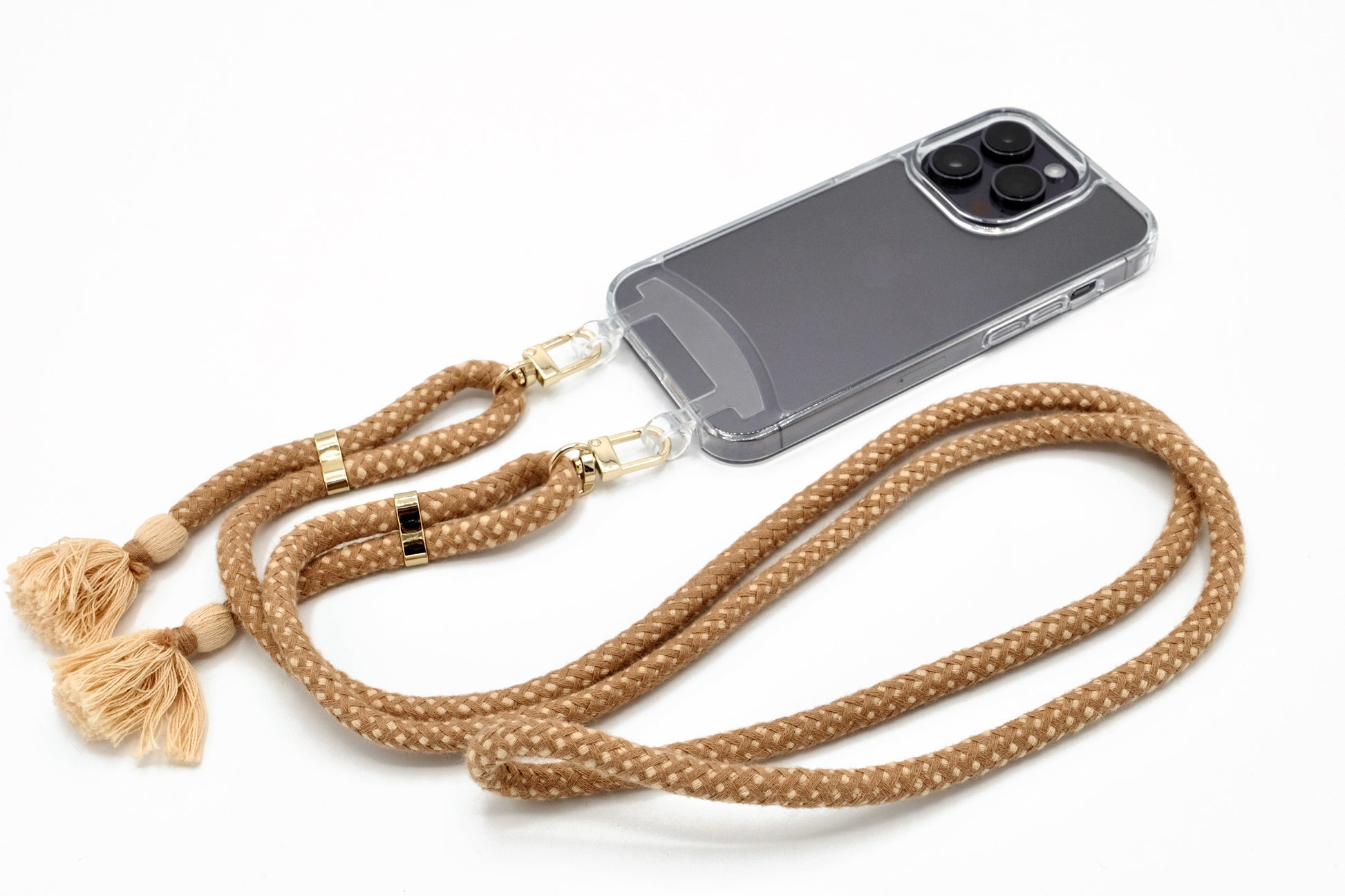 Handyhülle und Handykette vereint in einem einzigen Produkt.