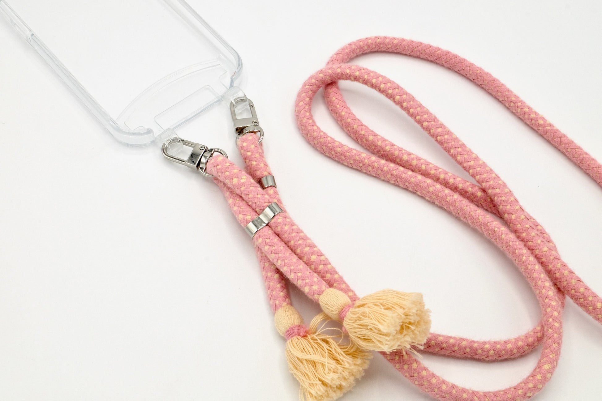 Handyhülle und Handykette vereint in einem einzigen Produkt.