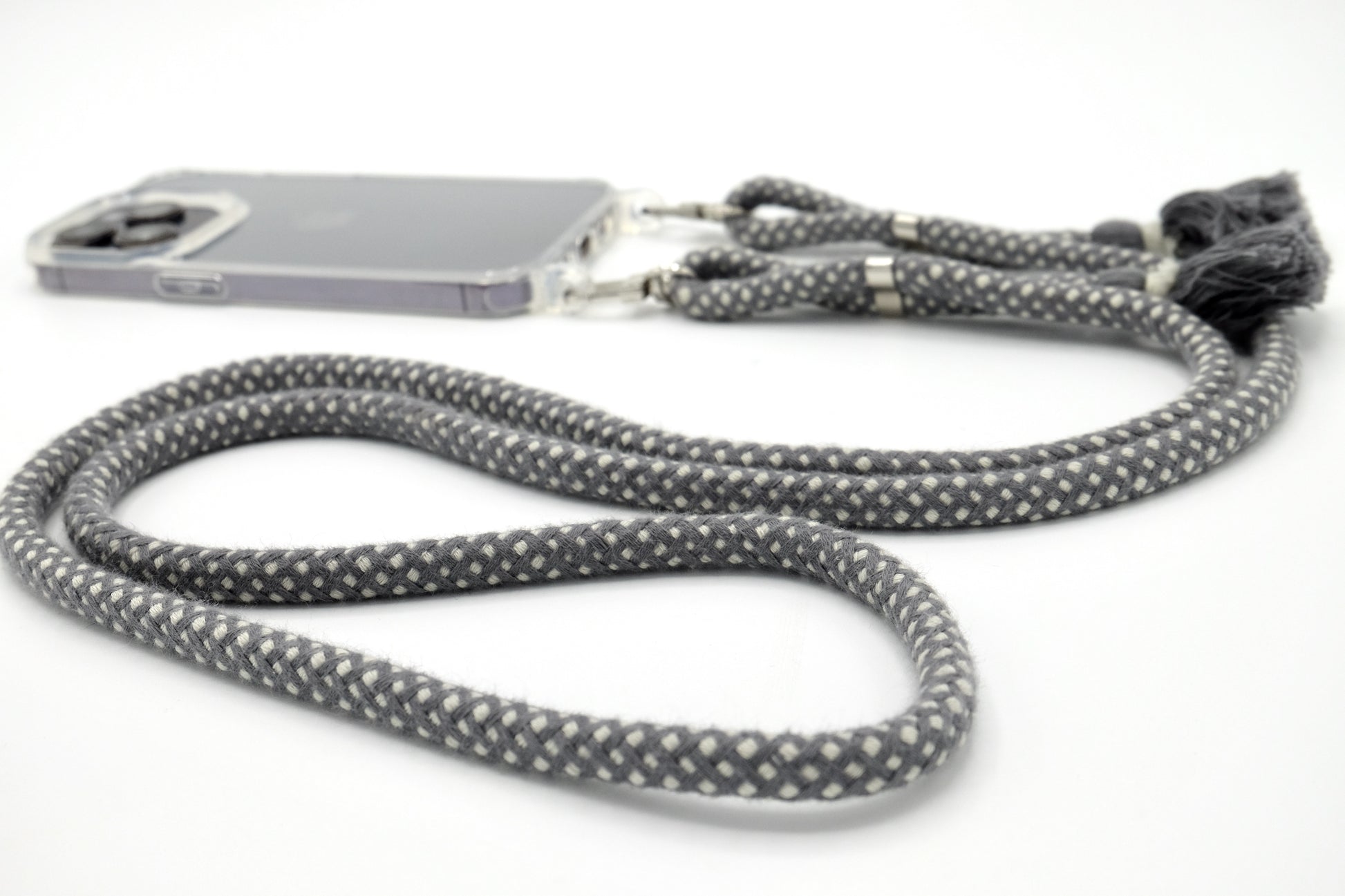 Handykette - Baumwollkordel mit 2 Karabinern Grau