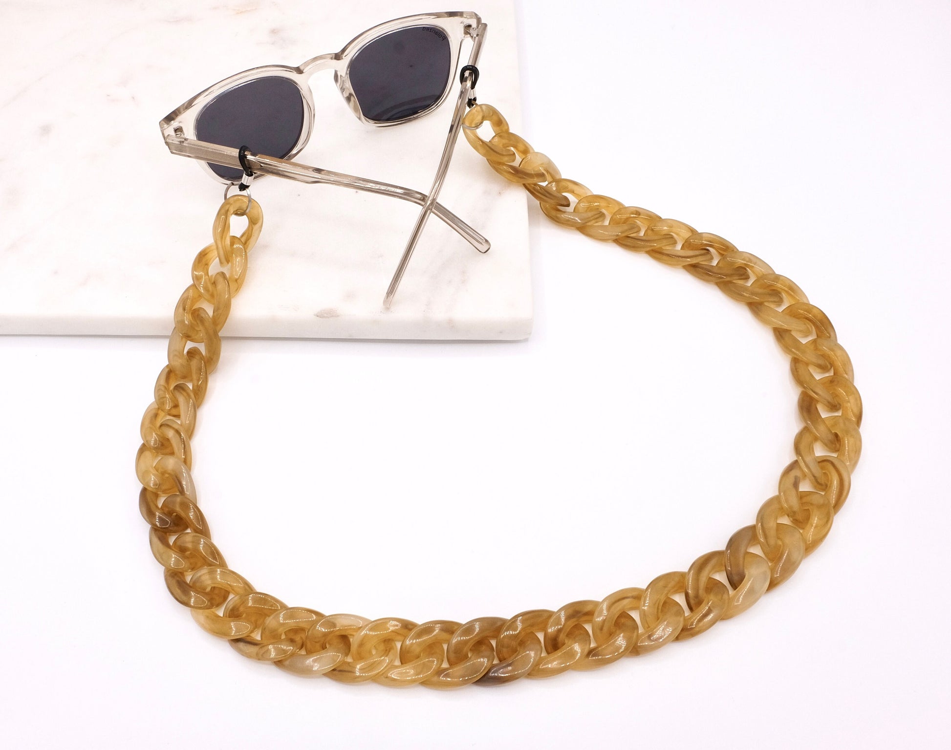 Entdecke unsere stilvolle und sichere Brillenkette für Sonnen- und Lesebrillen, gefertigt aus hochwertigen Acrylgliedern – der ideale Blickfang für jeden Anlass!