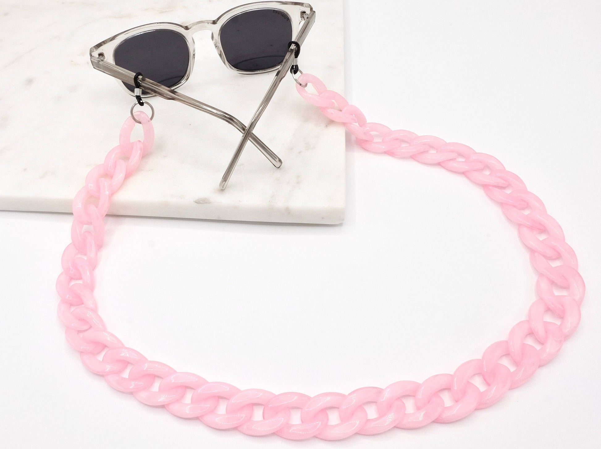 Entdecke unsere stilvolle und sichere Brillenkette für Sonnen- und Lesebrillen, gefertigt aus hochwertigen Acrylgliedern – der ideale Blickfang für jeden Anlass!