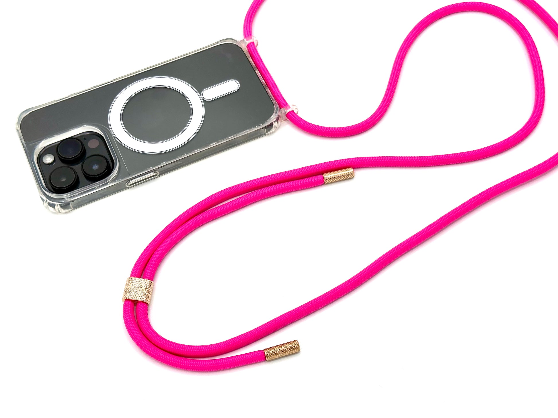Hochwertige Handyhülle mit Ösen kombiniert mit einem weichen und anschmiegsamen Seil mit schraubbaren Endkappen