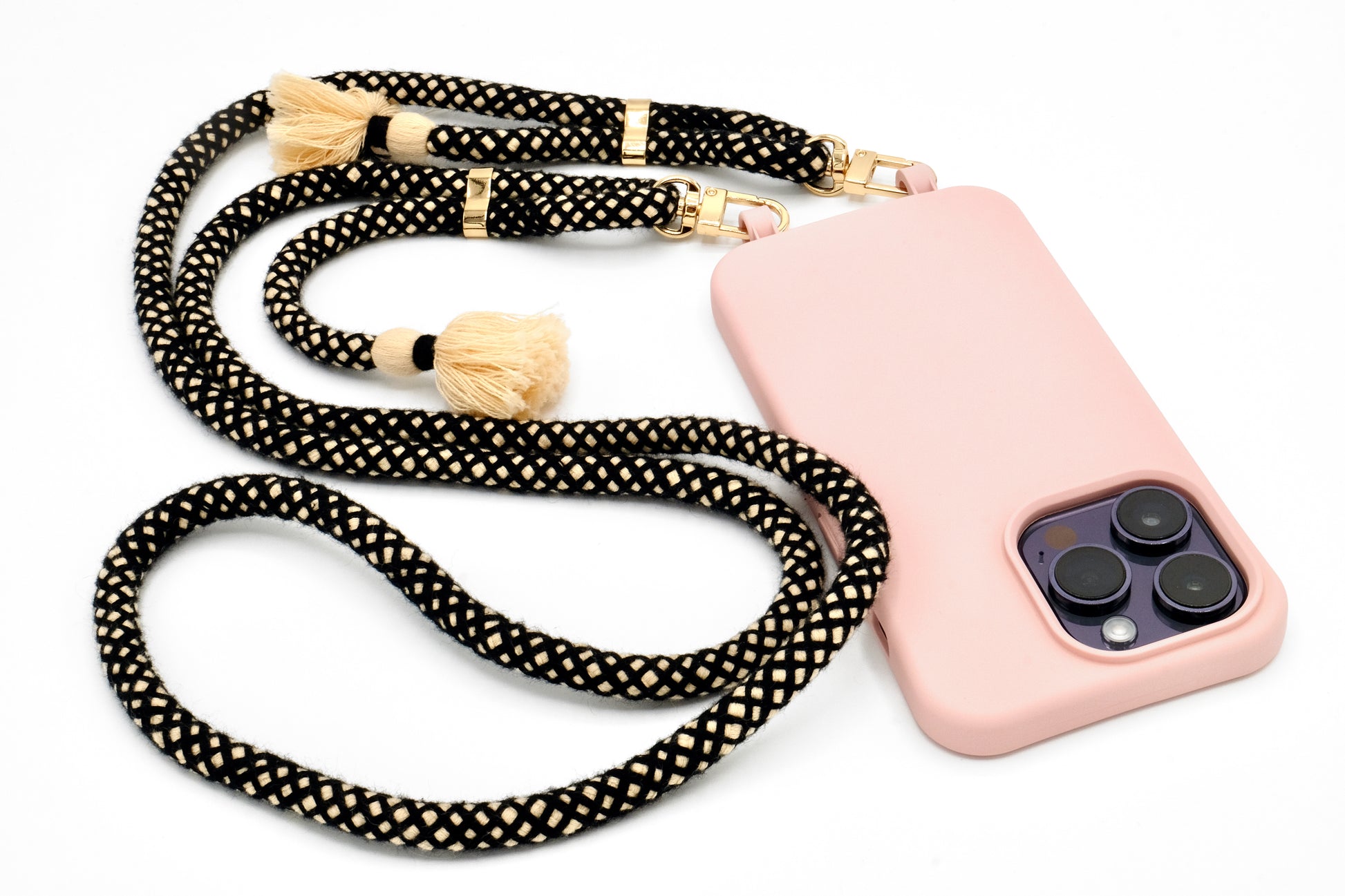 Handyhülle und Handykette vereint in einem einzigen Produkt.