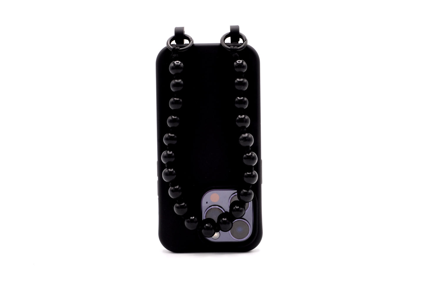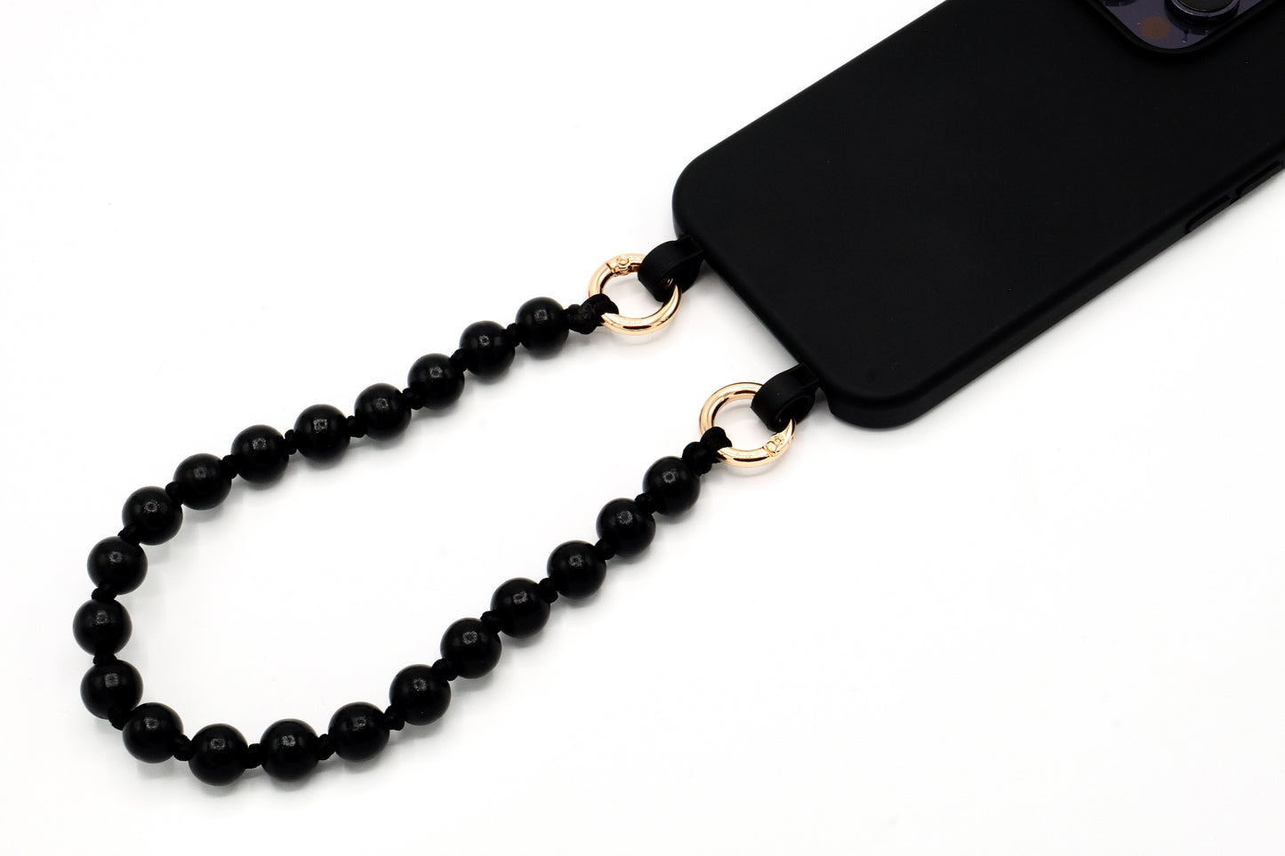 Handykette - Holzperlen kurz mit Karabinern All Black