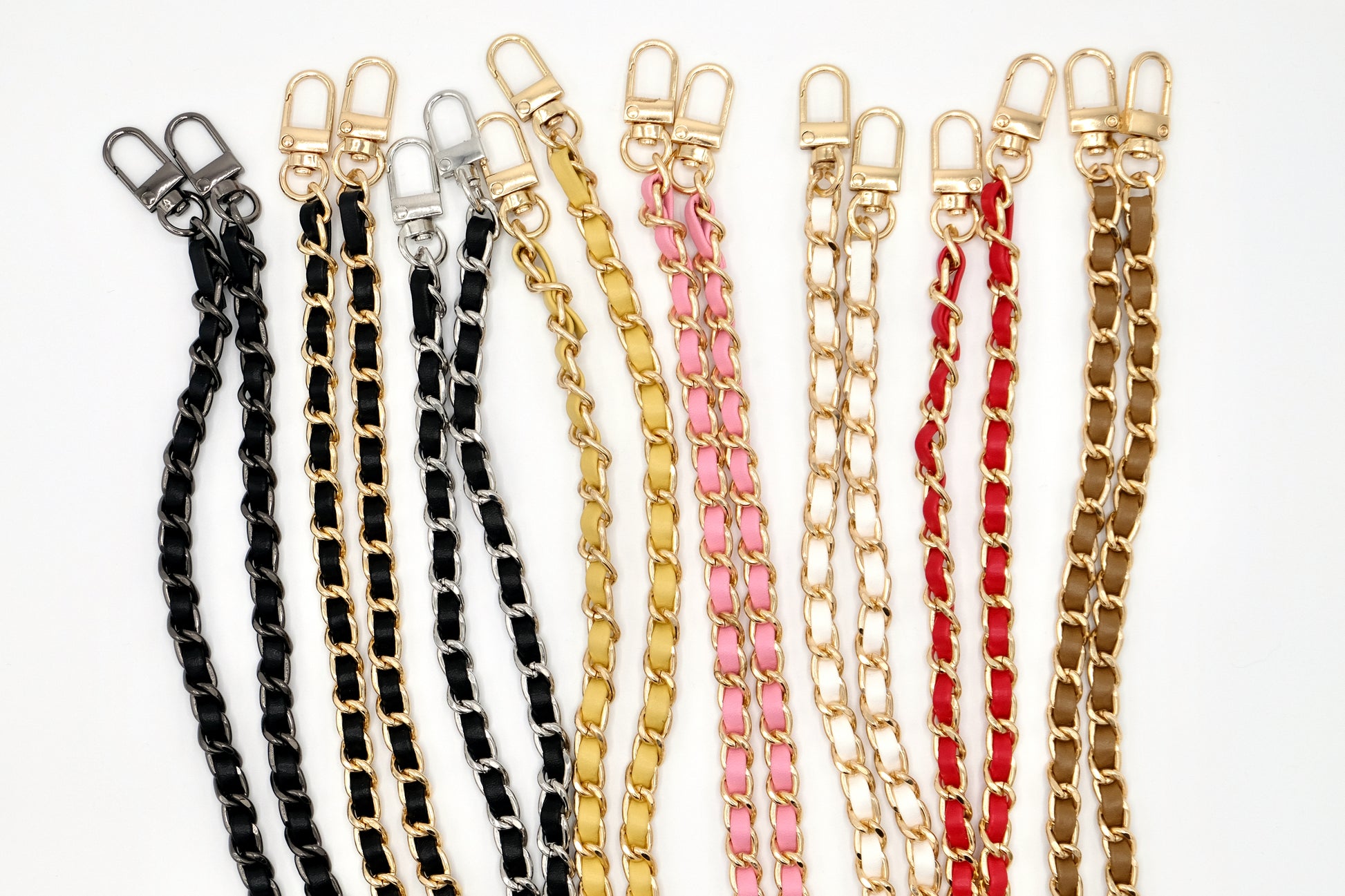 Unsere Handyketten aus Edelstahl kombiniert mit veganem Leder und einem praktischen Karabiner, ideal für Handyhüllen mit Ösen oder Handtaschen. Erhältlich in verschiedenen Metall-Leder-Farbkombinationen