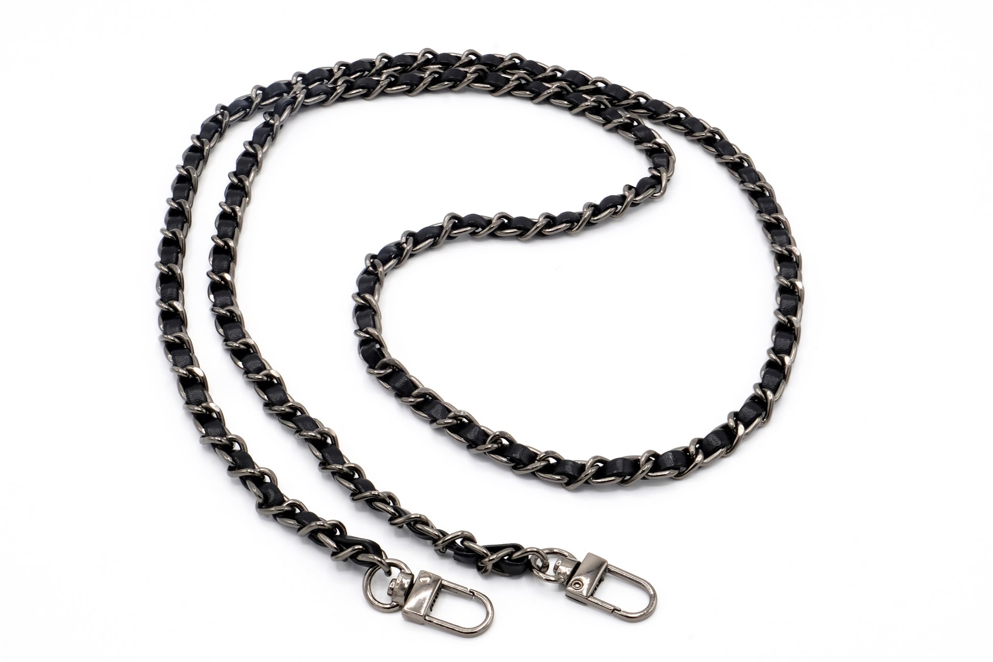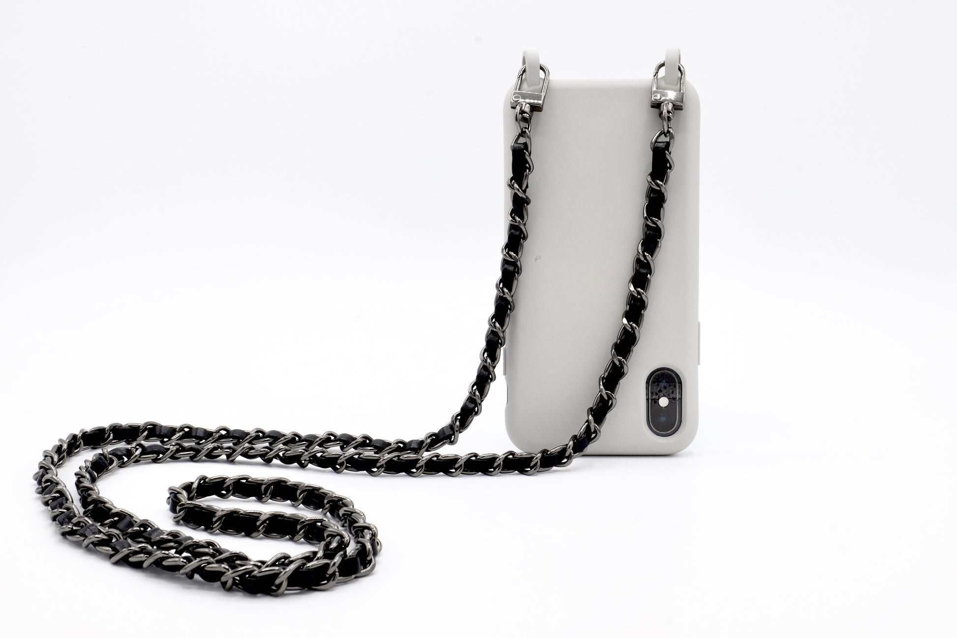 Handykette - Metall/veganes Leder mit Karabiner - Schwarz/Gunmetal