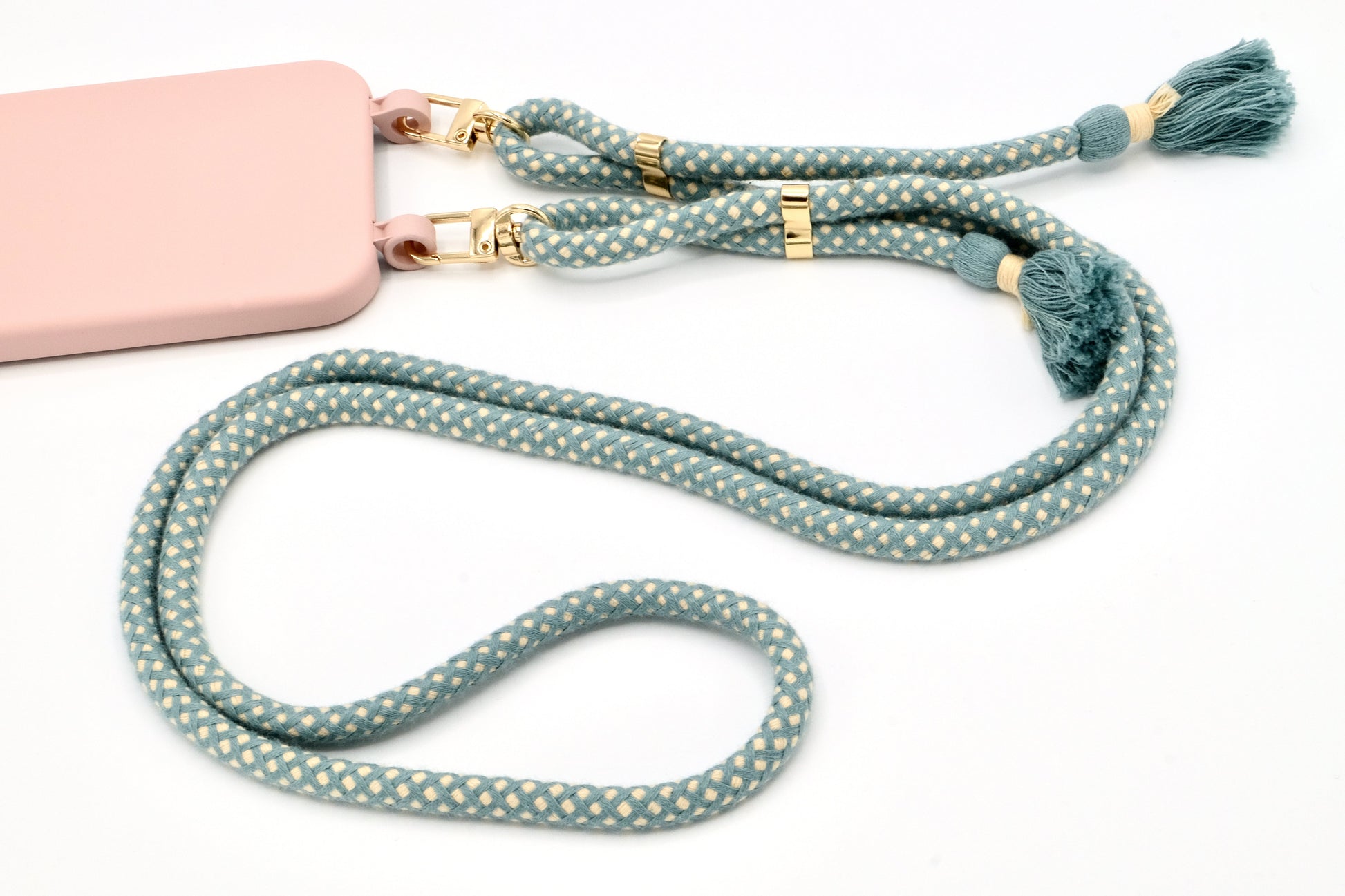 Handyhülle und Handykette vereint in einem einzigen Produkt.