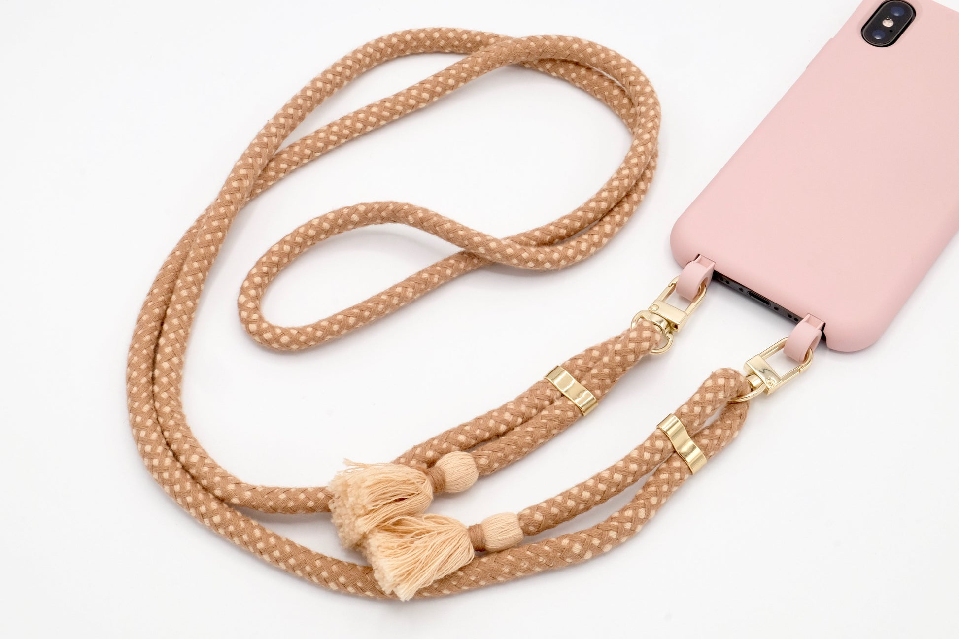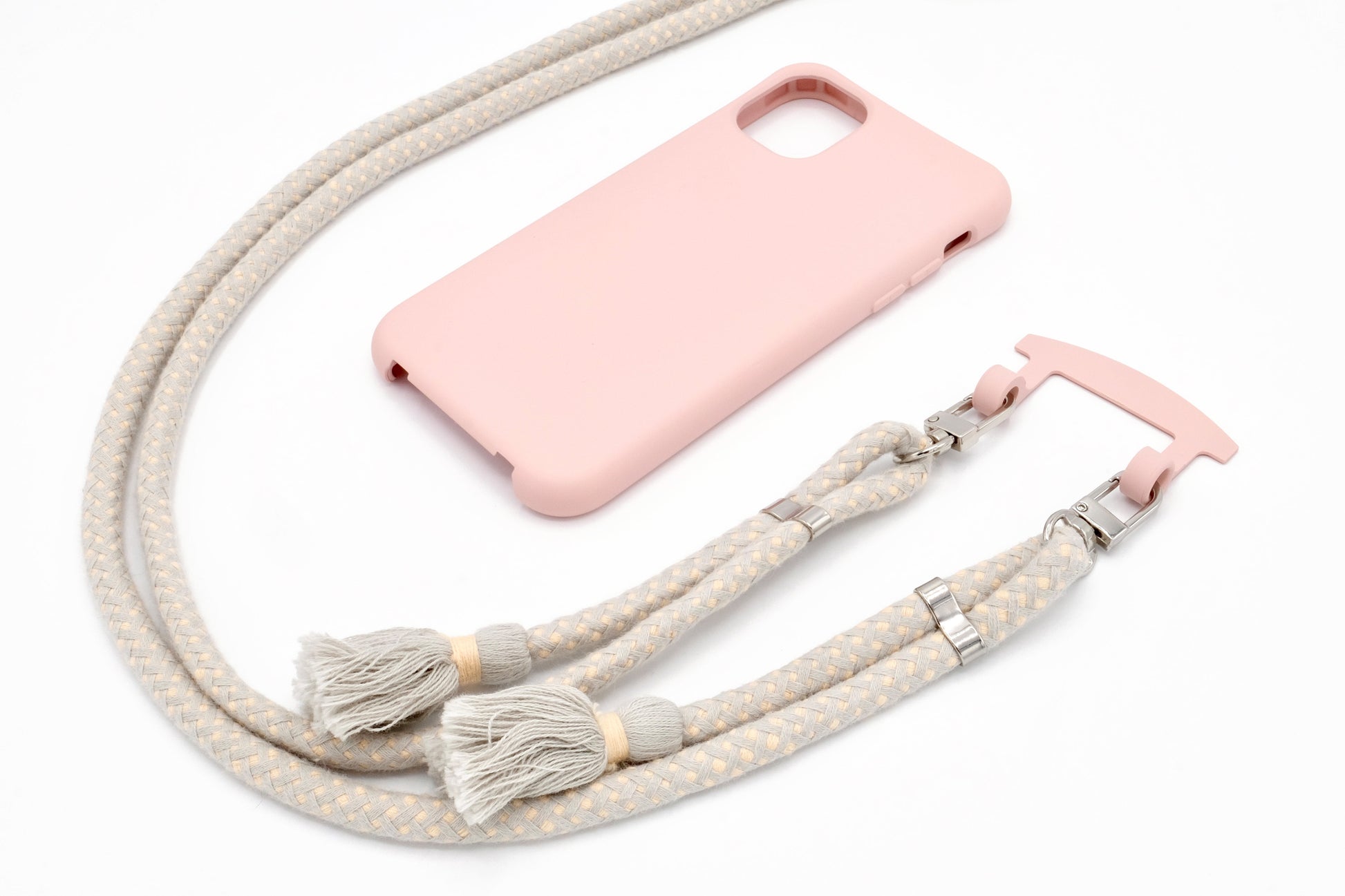 Samsung 2in1 Puderrosa - modulare Handykette mit Baumwollkordel Creme