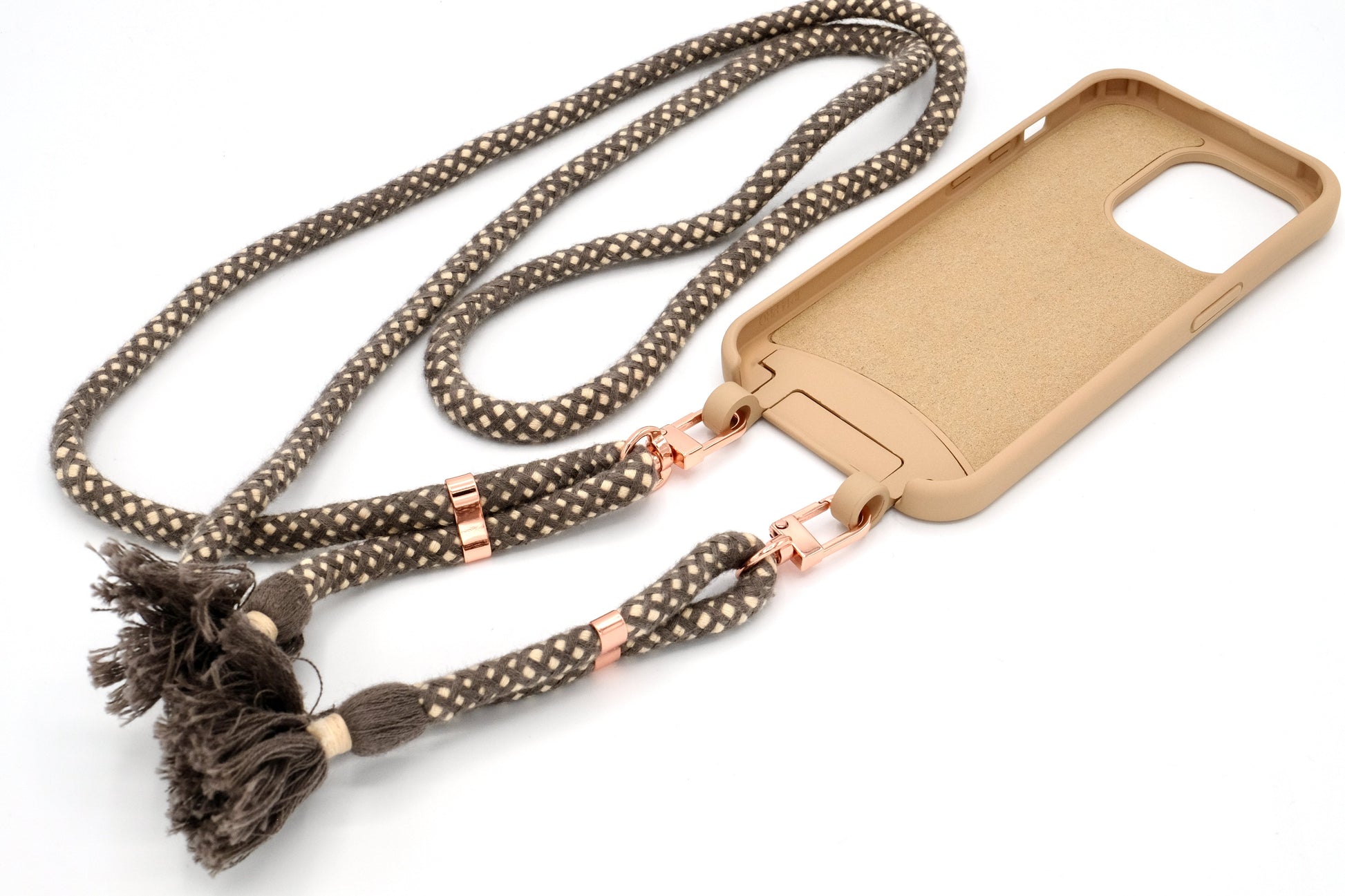 Handyhülle und Handykette vereint in einem einzigen Produkt.