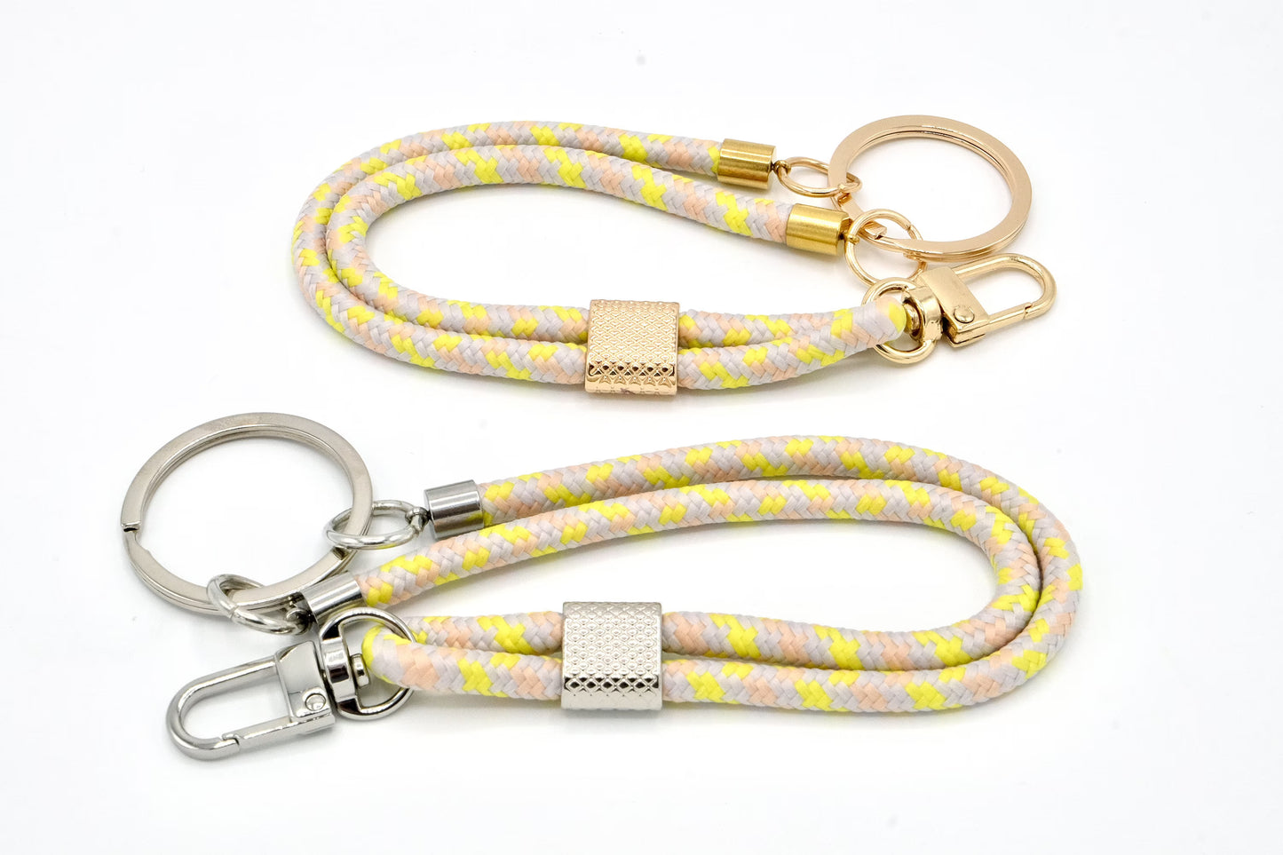 Entdecke unseren vielseitigen Schlüsselanhänger aus Seil, ausgestattet mit einem 360° Karabiner und einem stabilen Schlüsselring. Der praktische Karabiner ermöglicht eine schnelle Befestigung an deiner Handtasche oder Gürtelschlaufe.