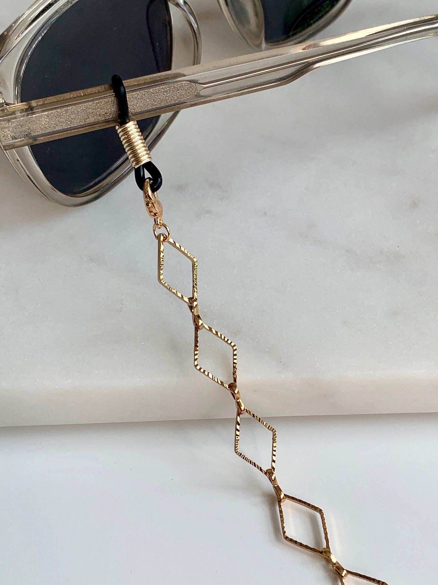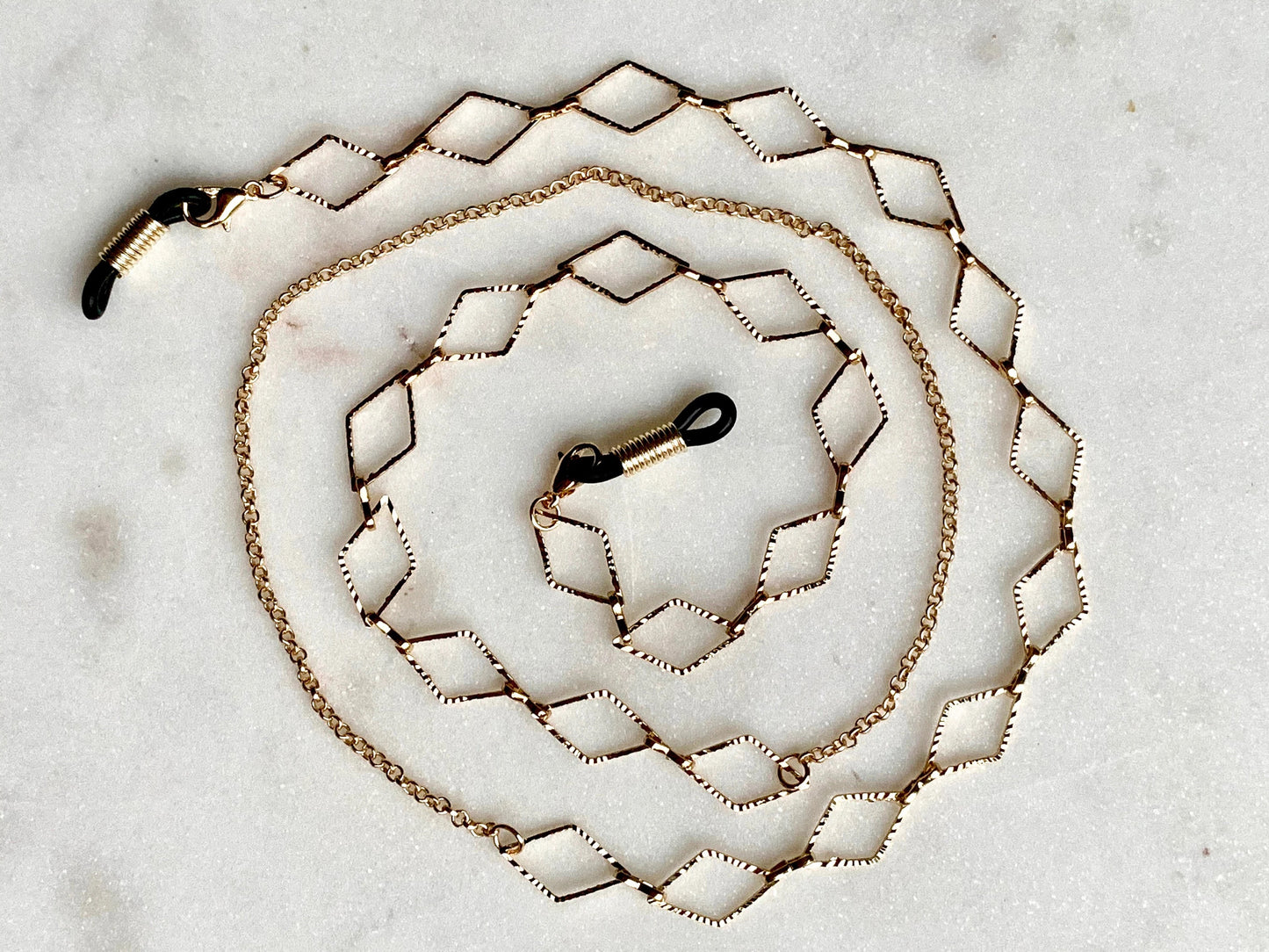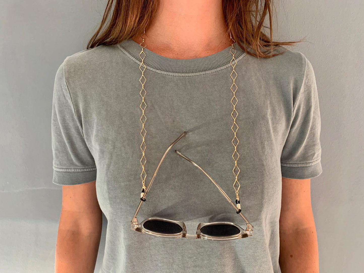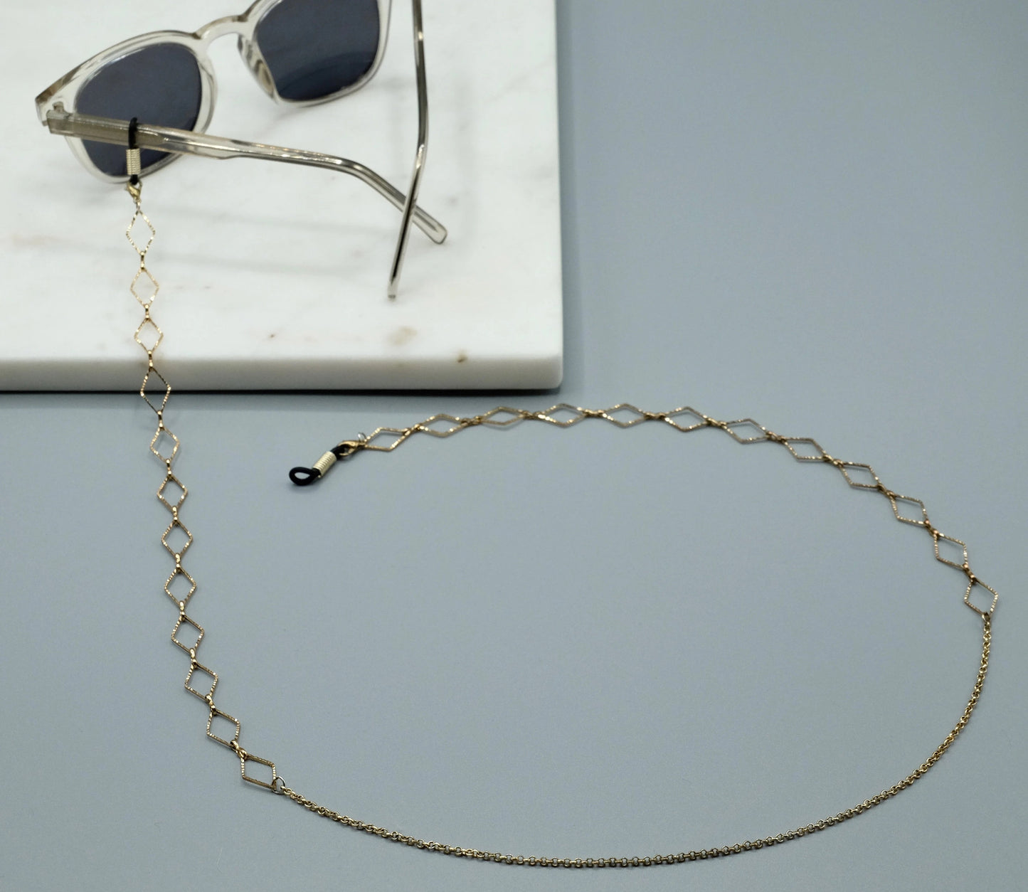 Die elegante Brillenkette ist aus zierlichen Kettenglieder und rautenförmigen Elementen.gefertigt. Ein raffinierter Hingucker, zart und elegant.